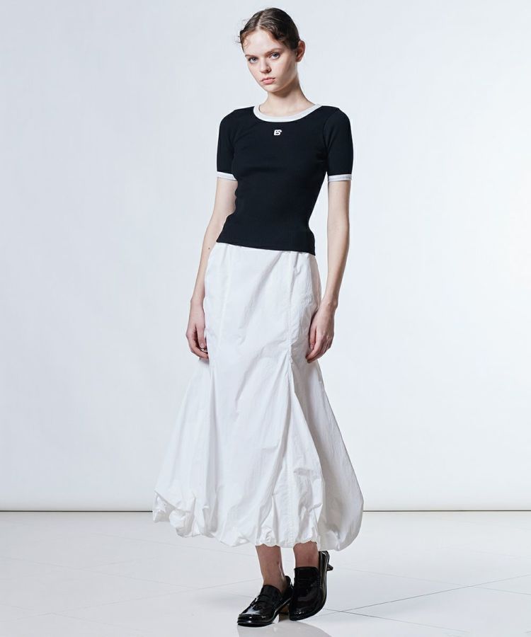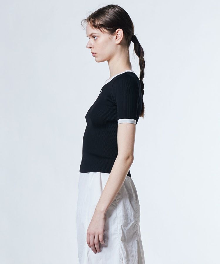 絶妙な肉感が特徴的な、ダブスタオリジナルのレンシルテレコ生地を使ったTシャツ。コンパクトで女性らしい、フィット感のあるシルエットに仕上げました。バイカラーのデザインとフロントのワンポイントが、スポーティなアクセントに。タイトなTシャツは、ボリューム感のあるボトムスとの相性が抜群です。