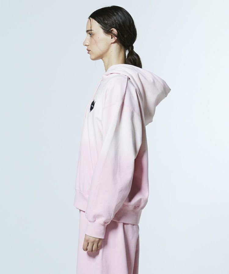 さりげないグラデーションで奥行きのあるカラーリングを表現したパーカー。胸元にはハートの刺繍をさりげなくあしらい、ワンポイントに仕上げました。コーディネートの差し色として映えるピンクとサックスの2色展開。同素材のパンツ(型番:2506121261)と合わせれば、統一感のあるスウェットセットアップスタイルを楽しめます。