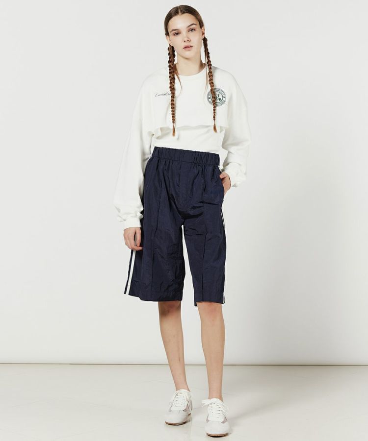 スポーツウエアをモダンにアレンジしたプルオーバー。袖をゆったりとしたバルーンシルエットに、ボディはスーパーショート丈にしてファッショナブルに仕上げました。ダンボール生地らしい品のある質感や独特の膨らみ感もポイント。ベーシックなカラーなので、お手持ちのTシャツやタンクトップに合わせるだけで、簡単にトレンドライクなレイヤードスタイルが楽しめるアイテムです。