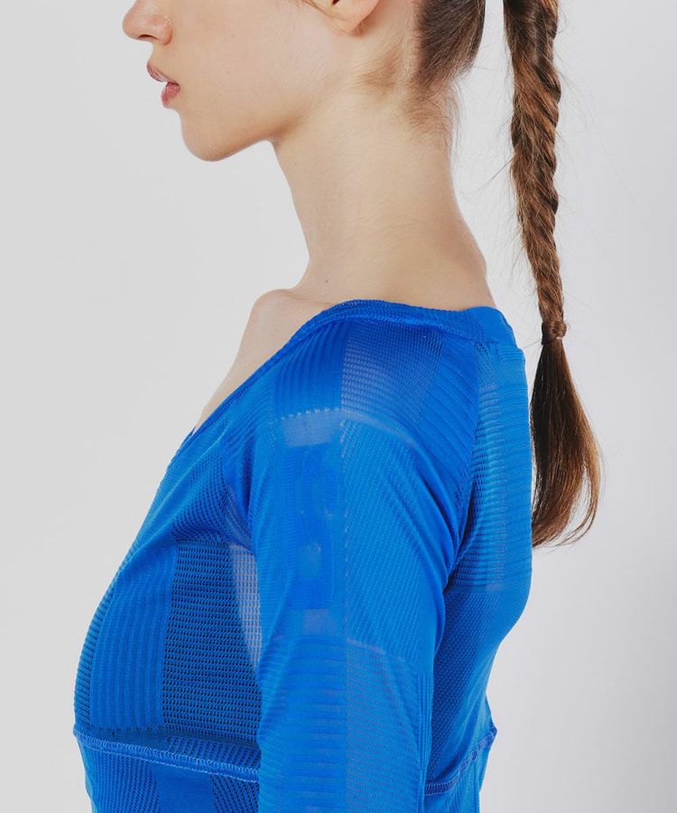 ESSENTIAL史上最薄のPU混ジャガード生地を使用したトップス。一枚のジャガードの上にさらに柄違いの透けるジャガードを組み合わせ、凝ったデザインに仕上げました。完全オリジナルのニット生地で、編むこと、染色ともに難易度の高い製法で仕上げたジャパンクオリティが光る一枚。インナーとしてはもちろん、これ一枚でコーディネートがサマになります。