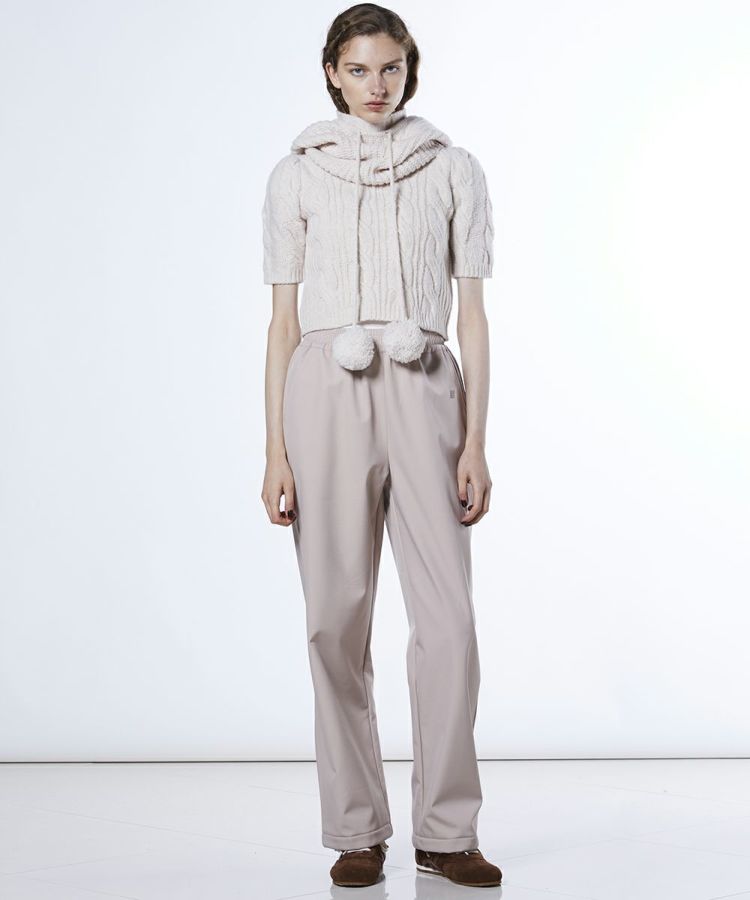 ボリューム感のある片畦編みで仕上げたショートニット。シンプルながらもあえて半袖にすることで、季節感のあるこなれたスタイリングが楽しめます。カラーはコーディネートに合わせやすいオフホワイトとネイビーの2色展開。1枚での着こなしはもちろん、同素材のバラクラバやアームウォーマーと合わせれば、違った表情のレイヤードスタイルも楽しめます。