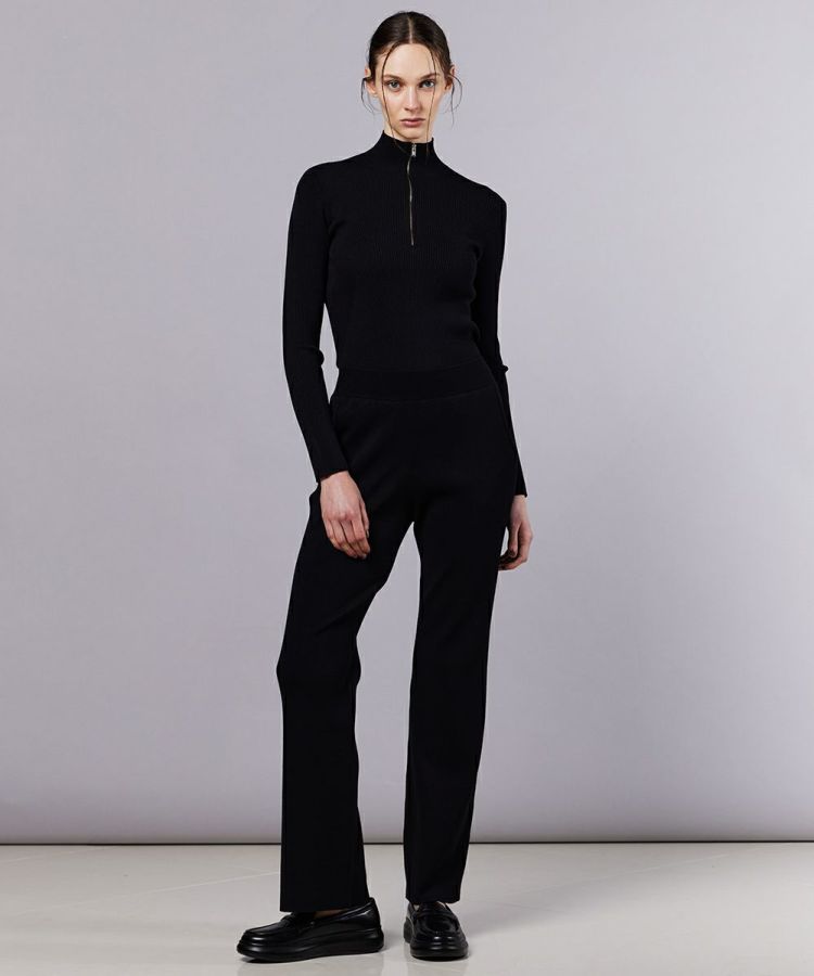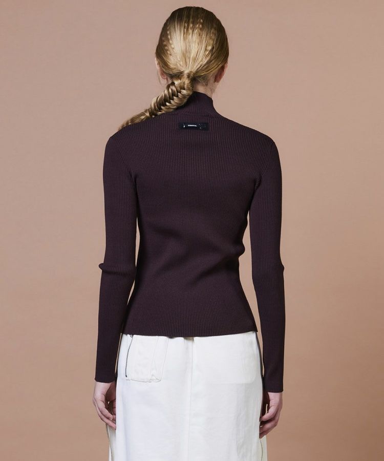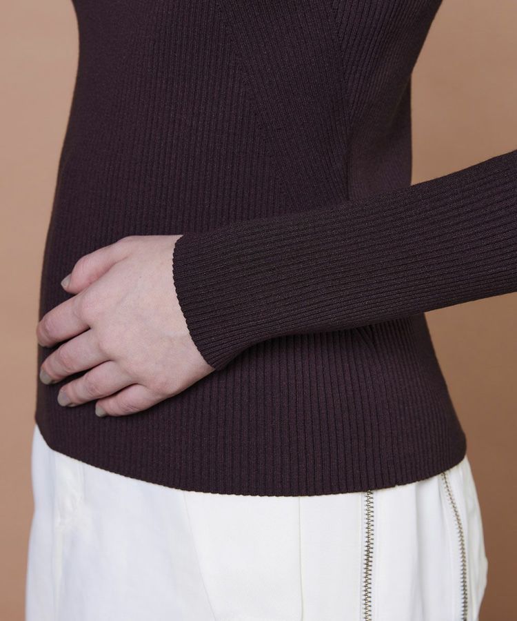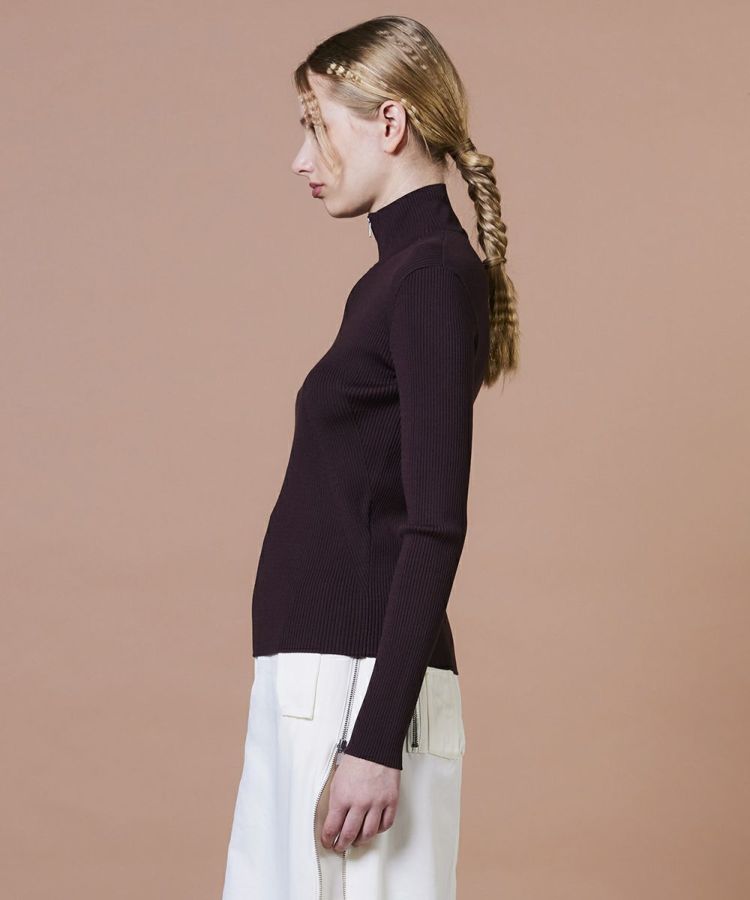 タイトなシルエットが女性らしいラインを引き立てるタートルネック。細やかなリブ編みと上品な光沢感が、さりげなく高級感を演出します。フロントにはハーフジップのファスナーをあしらい、抜け感のあるアクセントに。コンパクトなシルエットはボリュームのあるボトムスとの相性がよく、ロングスカートやワイドパンツと合わせれば、バランスの取れた旬なスタイリングが完成します。