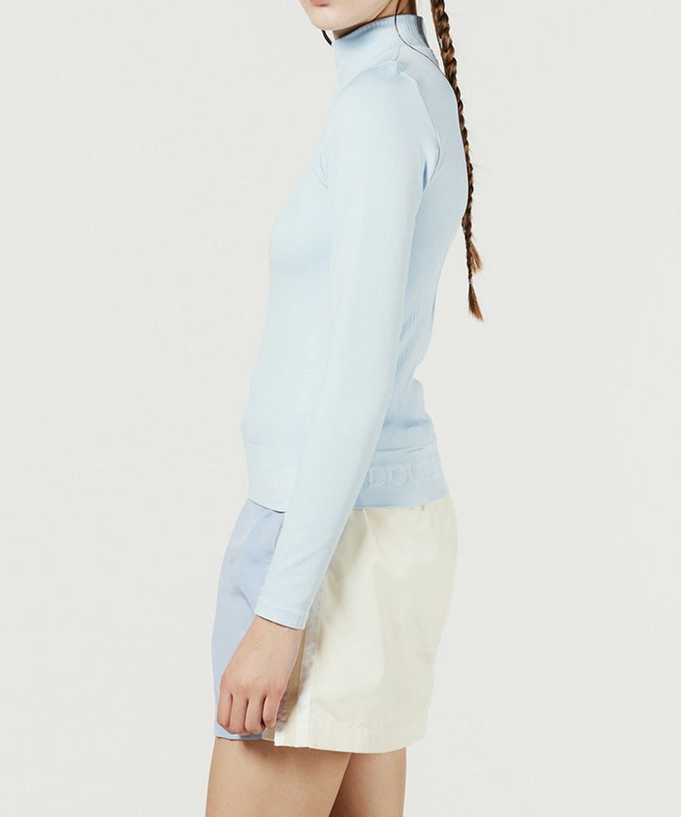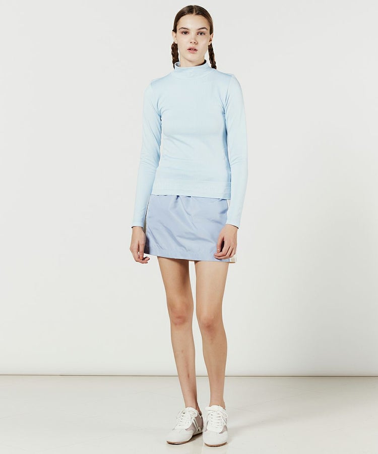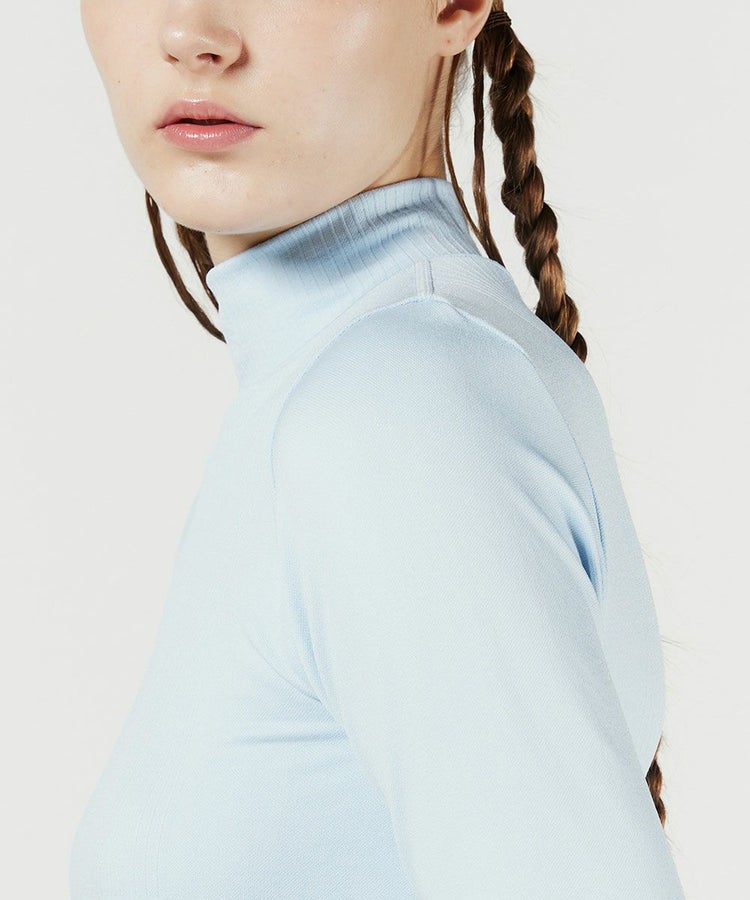 爽やかなカラーリングでスポーツライクに仕上げたプルオーバー。コンパクトなハイネックがおしゃれです。ウエストの裾だけでなく、お腹の左右にもロゴを施すことでインしてもアウトしてもワンポイントになるのがうれしいポイント。ストレッチ性に優れており、動きやすさも抜群なのでデイリーでも重宝する一枚。