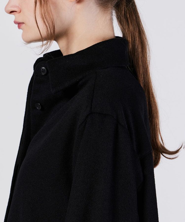 繊細な質感が美しい、カシミヤ100%を使用したシャツ。圧倒的に軽量でありながら、高い保温性を誇ります。また、カシミヤ特有の上品な艶感としっとりとした肌触りが魅力的。やみつきになるような着心地の良さです。また、きれいな落ち感もポイントで、体型を拾わない程よいゆとりのあるシルエットながらも、ラフに羽織るだけでサマになるアイテム。同素材のパンツ(型番:4806311243)とセットアップを楽しむのもおすすめです。