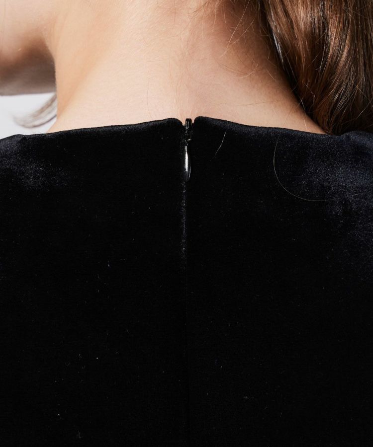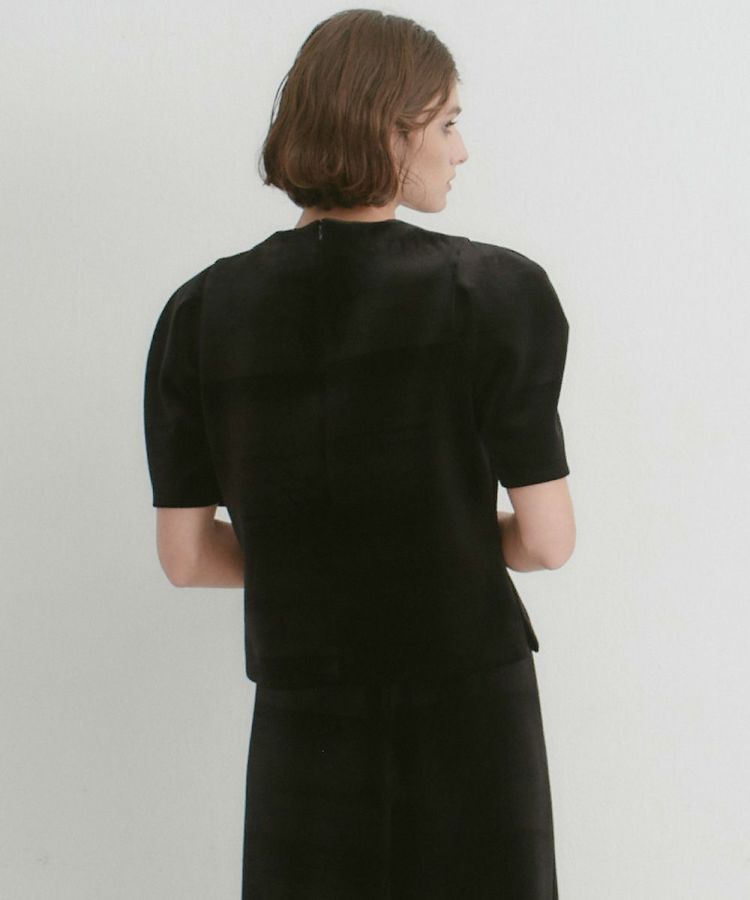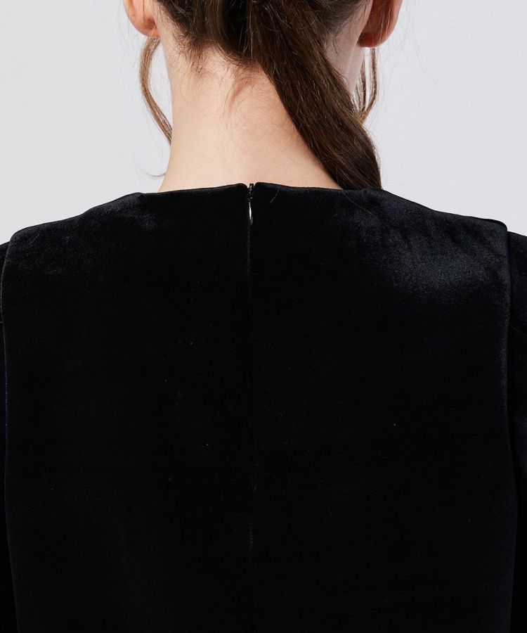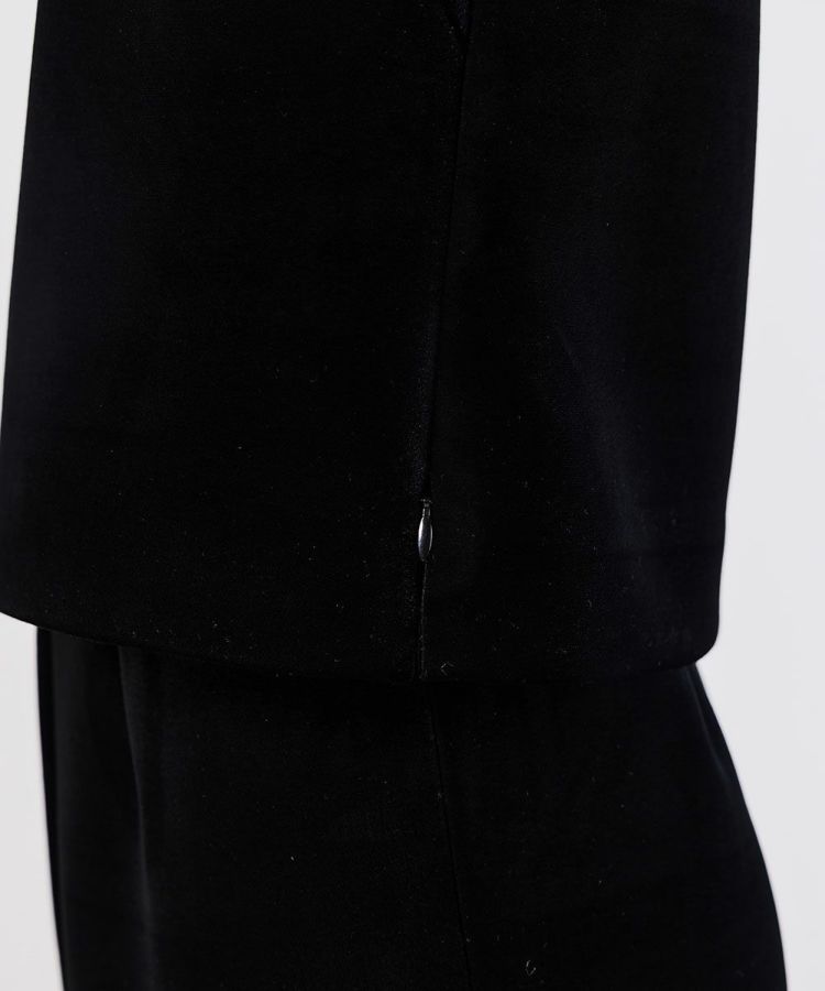 上品な光沢感のあるベルベット素材を用いた、エレガントなトップス。立体的なスリーブがモードな印象を与えます。半袖ながらもやや長めの丈にすることで、二の腕をさりげなくカバーできるのがうれしいポイント。ほんのりシェイプしながらもゆとりのあるボディで、体型を拾わずドレスアップが叶う一枚です。同素材のスカート(型番:4802411243)と合わせてワンピース風を楽しんだり、オケージョンにもおすすめ。