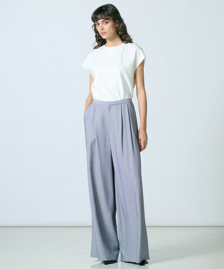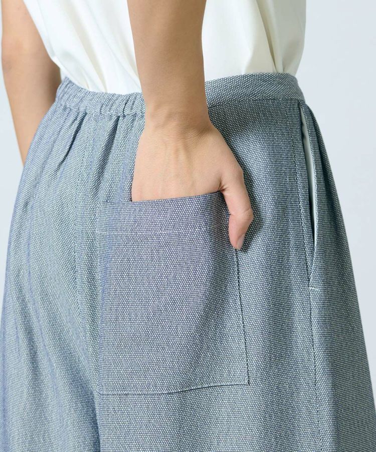 イタリア・リネアエッセ社の素材を使用したワイドパンツ。ヴィスコース100%で、ドビー織りのオックスシャンブレー生地となっています。絶妙な落ち感があり、ラグジュアリーさも持ち合わせているのが魅力。ワイドシルエットでリラクシンながらも、どこか華やかさのある一本です。