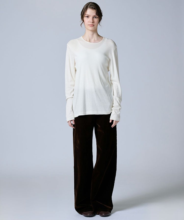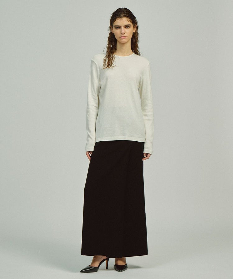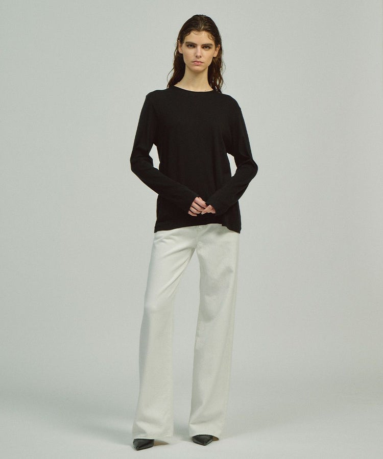 身体のラインに美しくフィットしてくれるフライス編みのトップス。肌ざわりが心地よく、伸縮性にも優れているので、ストレスフリーな着心地を実現します。どんなコーディネートにも馴染みやすい、ホワイト、ブラウン、ブラックの3色展開。ロングスカートを合わせれば大人フェミニンに、デニムに合わせればシンプルながらも洗練された着こなしが完成します。