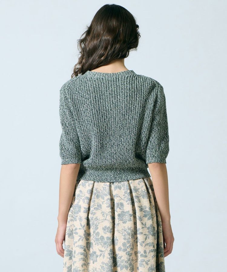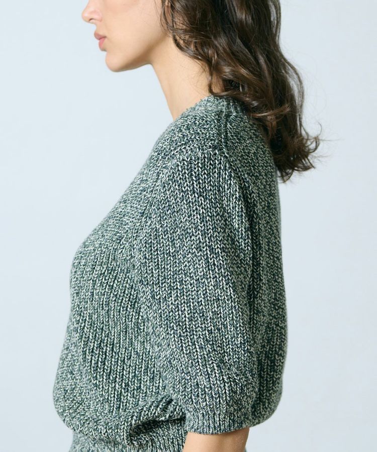 オーガニックコットンの心地よい肌あたりが魅力のトップス。いろんなカラーのコットンを複数回撚り合わせ、スポーティーな質感でありながらレトロな雰囲気を表現しました。さりげなく二の腕をカバーしてくれるスリーブ丈もポイント。コンパクトなシルエットなので全身のバランスをとりやすく、こなれた雰囲気に仕上げてくれる一枚です。
