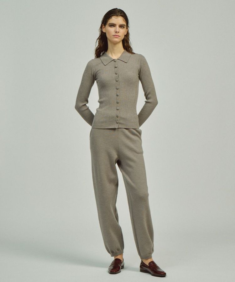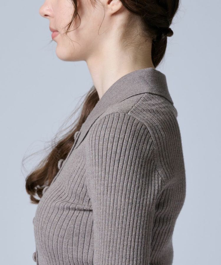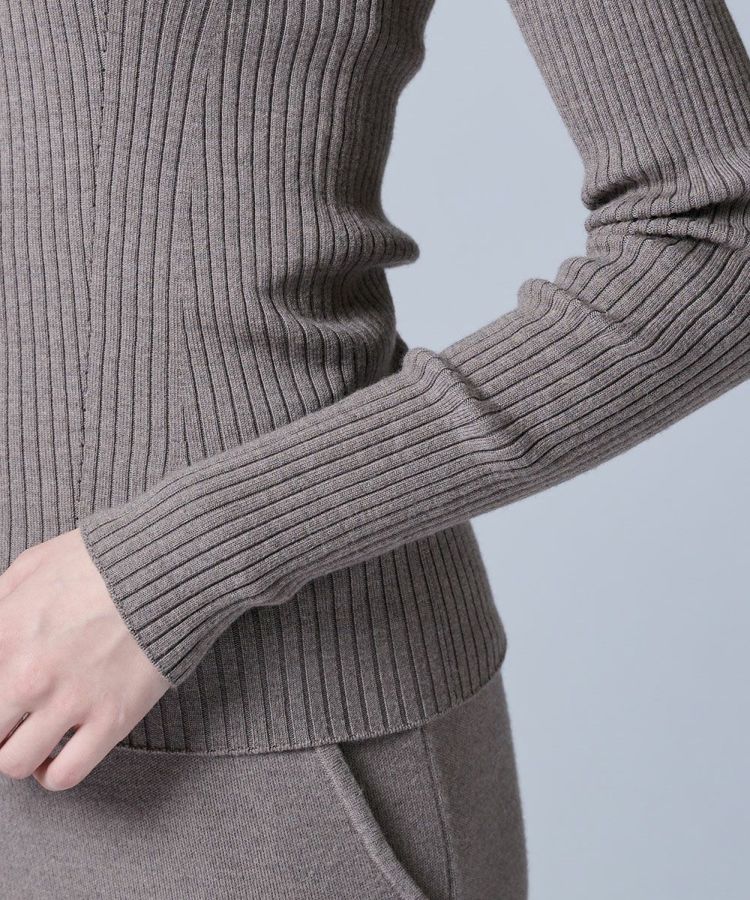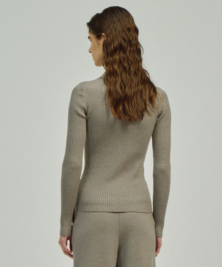 保温性と通気性に優れたメリノウールを贅沢に使用したニットトップス。しなやかな肌ざわりで季節を問わず快適な着心地を叶えます。リブ編みならではの縦ラインがシルエットをすっきりと見せ、ほどよく身体にフィットすることで女性らしい美しい印象に。襟付きのデザインがきちんと感を添え、カジュアルすぎず上品な着こなしを叶えます。