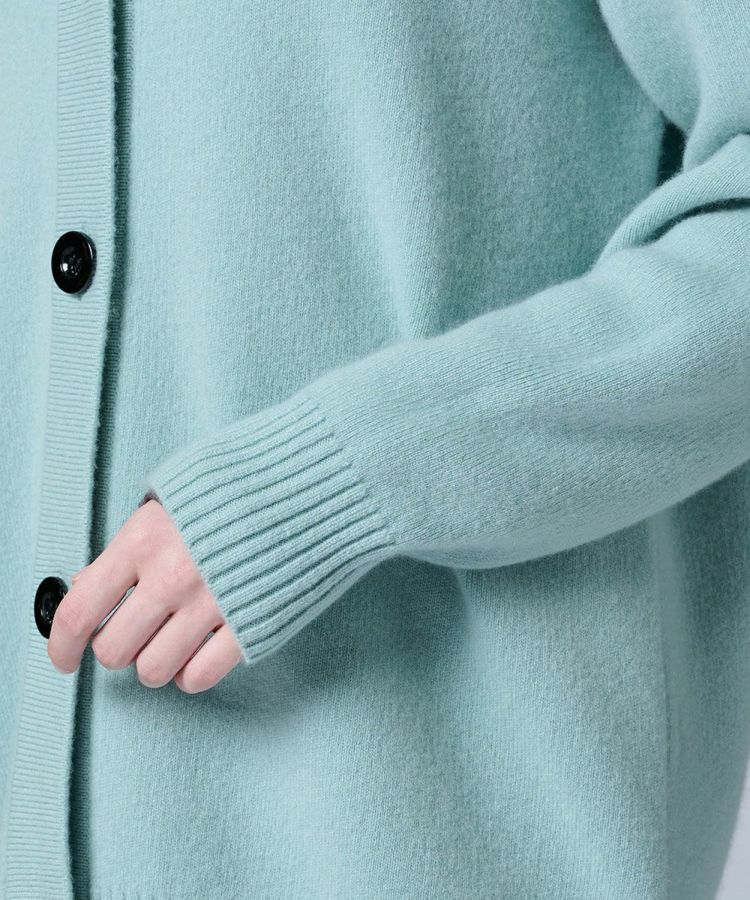 繊細でなめらかな質感が魅力の、カシミヤ100%カーディガン。ふんわりとしたミントカラーがスタイリングに爽やかな彩りを添え、羽織るだけで華やかな印象に仕上げてくれます。大きめのボタンが程よいアクセントになり、シンプルながらも上品な存在感を発揮。リブ仕様の袖口は伸縮性があり、冷気を防いで快適な着心地をキープします。