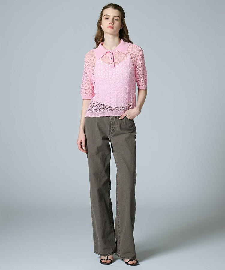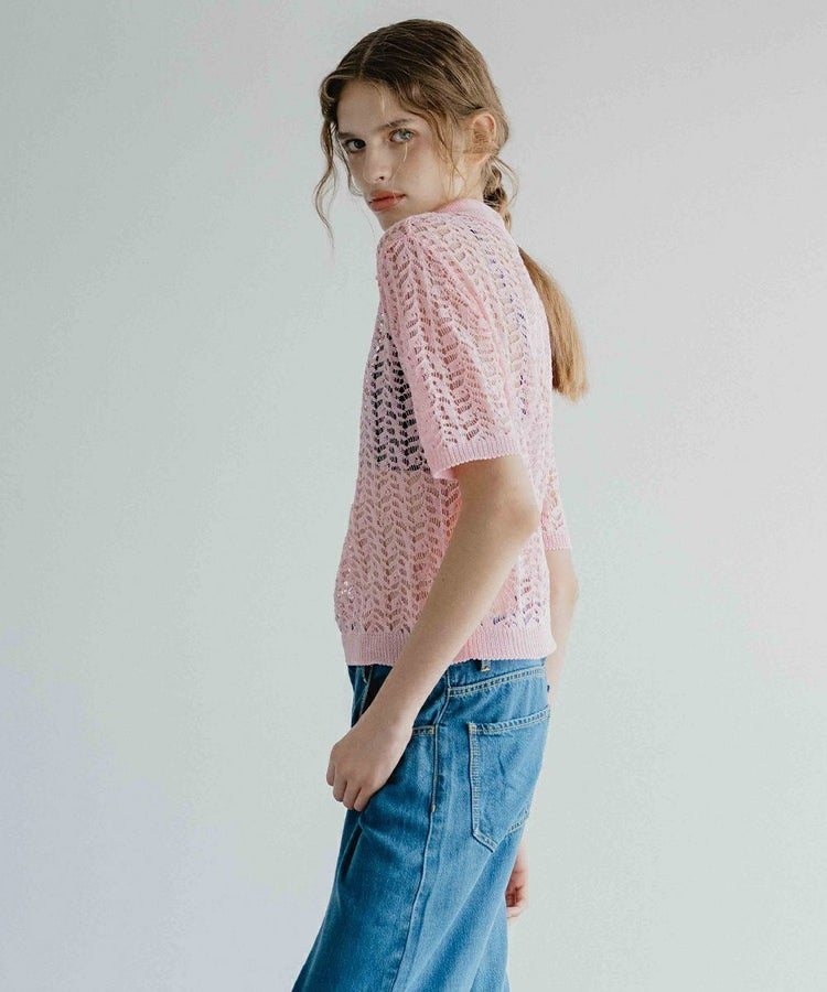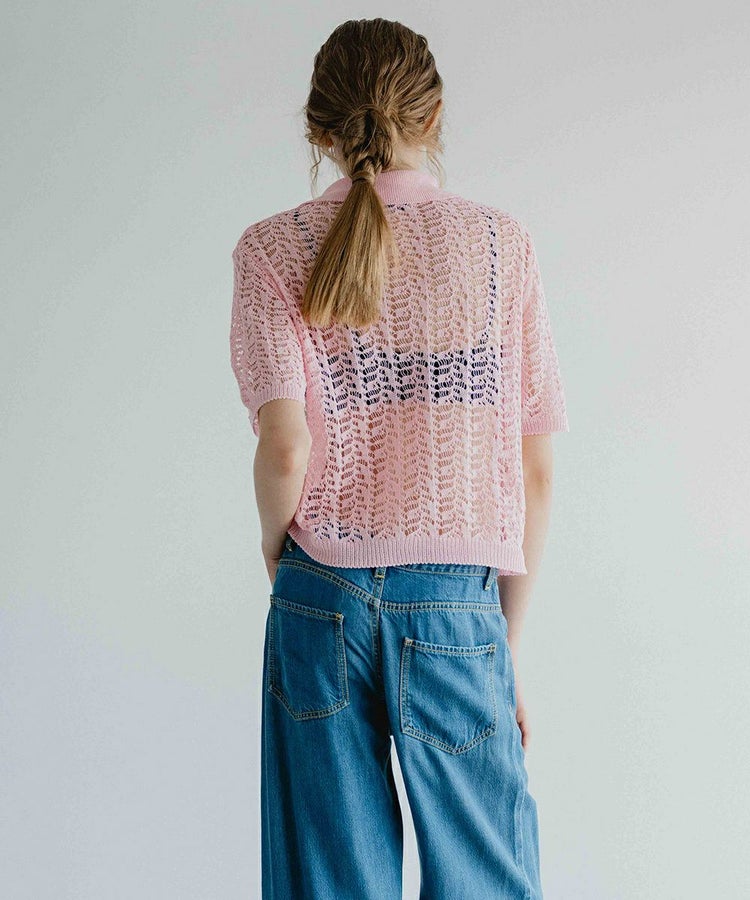 独特の編み模様と、ざっくりとした編み地が印象的なニットポロ。ほどよい透け感がセンシュアルなニュアンスを添え、合わせるインナー次第でさまざまな表情を楽しめます。カラーは、爽やかなホワイトとコーデの差し色になるピンクの2色展開。幅広いスタイリングに取り入れやすいアイテムです。