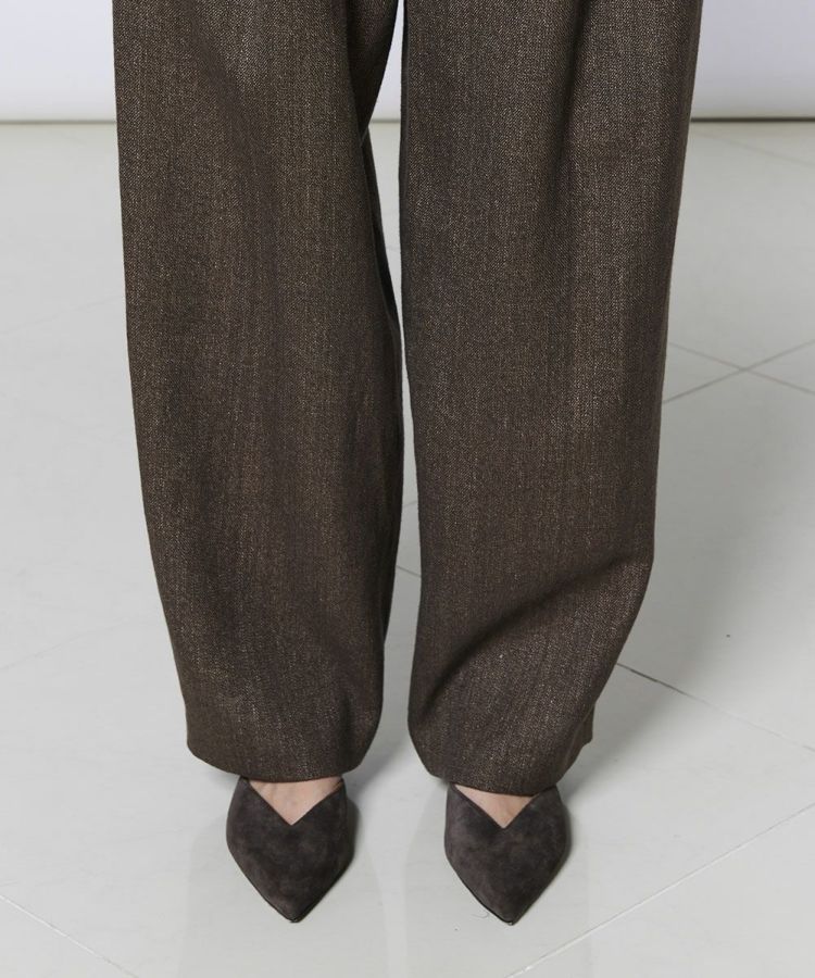 程よくゆとりのあるシルエットで、さりげなくスタイルカバーも叶うパンツ。ウエストにタックを施したイージーパンツ仕様で、腰まわりに程よい余裕があり、動きやすさと快適な穿き心地を実現しました。リラックス感がありながら品よく見えるのも嬉しいポイント。デイリーからオフィスカジュアルまで幅広く活躍し、同素材のジャケット(型番:0305240261)やジレ(型番:0304242261)と合わせれば、オケージョンシーンにも対応できる一本です。