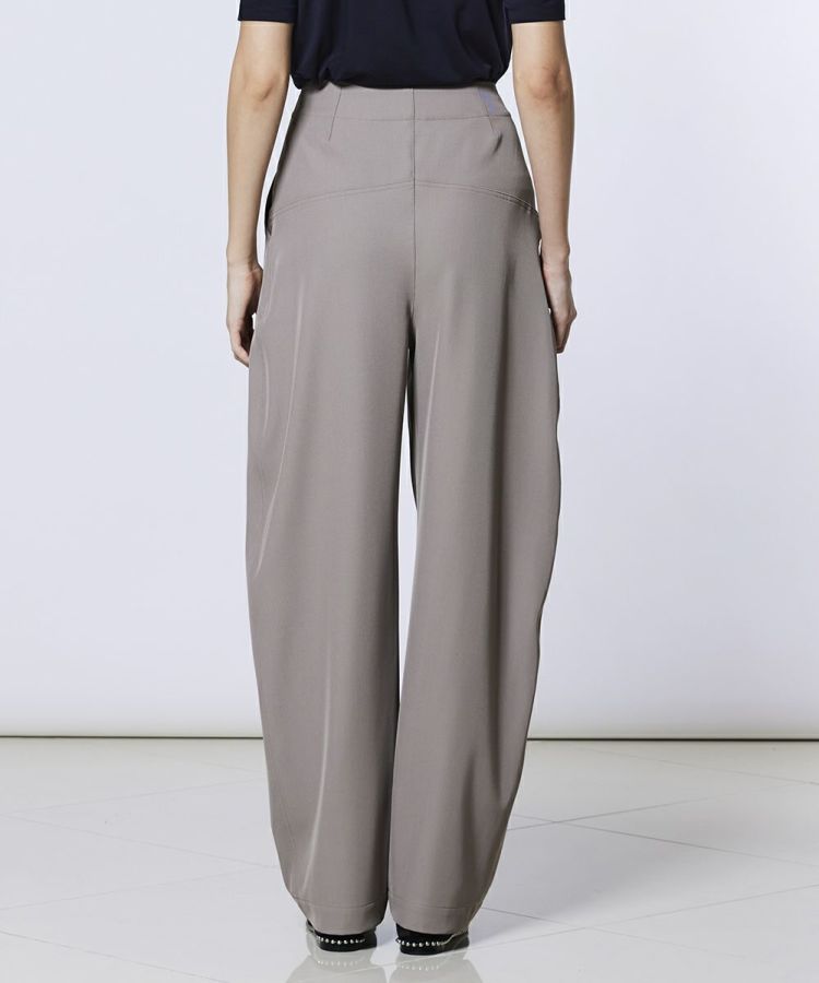 上品な光沢と立体感を備えたカルゼストレッチ素材を使用したパンツ。カーブシルエットが気になるラインを自然にカバーしながら、裾に向かってすっきりと細くなるデザインで脚のラインを美しく演出します。高いストレッチ性で動きやすく、快適な穿き心地も魅力。デイリーにはもちろん、オフィスカジュアルにも取り入れやすい一本です。
