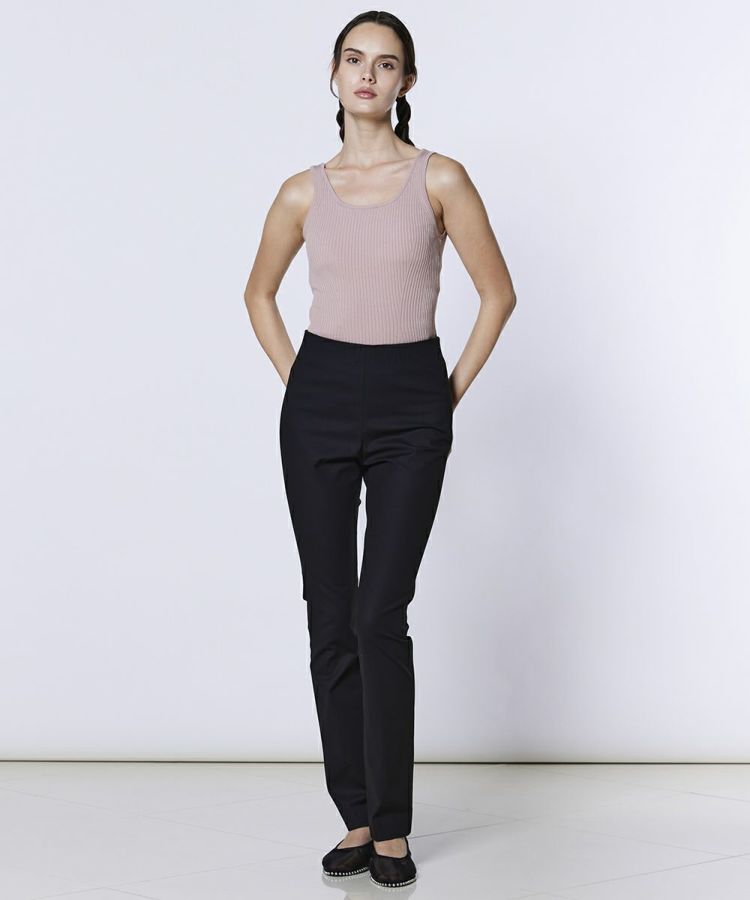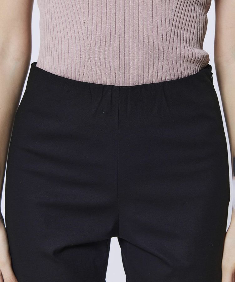 ブラックデニムならではのクールなムードが漂うパンツ。ストレッチ性に優れた素材を使用し、程よいフィット感と動きやすさを兼ね備え、デイリーに快適に着用できます。タイトなシルエットがサイドやバックから見たヒップラインを美しく引き立て、すっきりとした印象に。シーズンを問わず活躍する、汎用性の高い一本です。