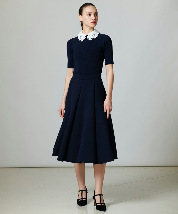 なめらかな表面感と優れたストレッチ性が特徴の、ダンボールニット生地を使用したスカート。程よいフレアシルエットと上品なドレープが、歩くたびに優雅なシルエットを描きます。立体的なプリーツで、ウエストやヒップラインが強調されないのもうれしい。また、足元がすっきりきれいに見える絶妙な丈感も密かなポイントです。トップスを選ばずコーディネートできるうえ、オンオフ、シーンを問わないので、ひとつ持っておくと重宝するアイテム。