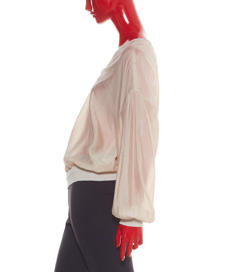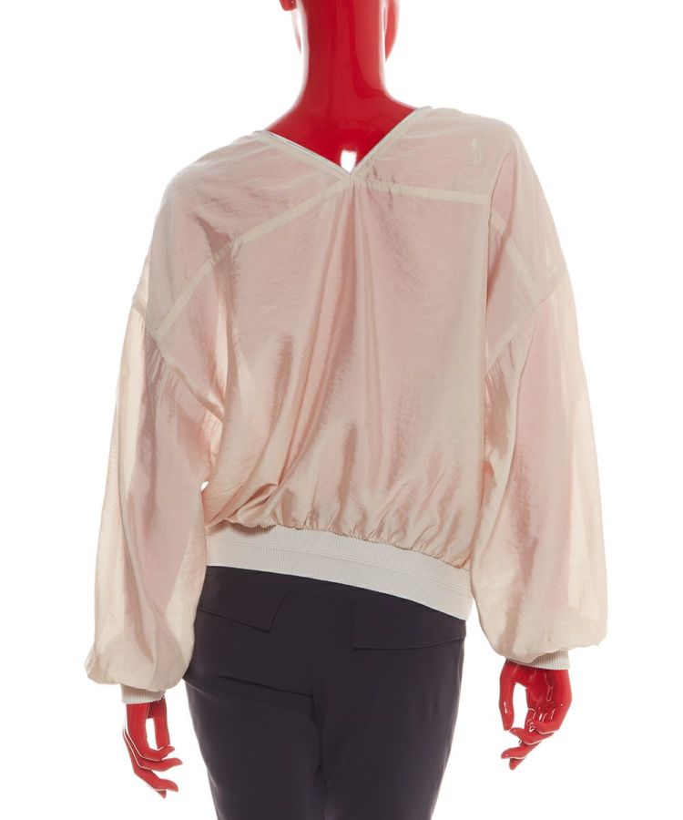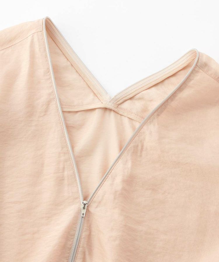 光を受ける角度でニュアンスのある表情を見せる、ルミナスオーガンジー素材のジャケット。ほどよくインナーが透け、抜け感を演出。ふんわりとボリュームのある長袖デザインも、軽く涼やかに映します。前後にV字を描くネックラインが、着こなしをすっきりと見せるポイント。袖口や裾のリブがシルエットをほどよく引き締めます。