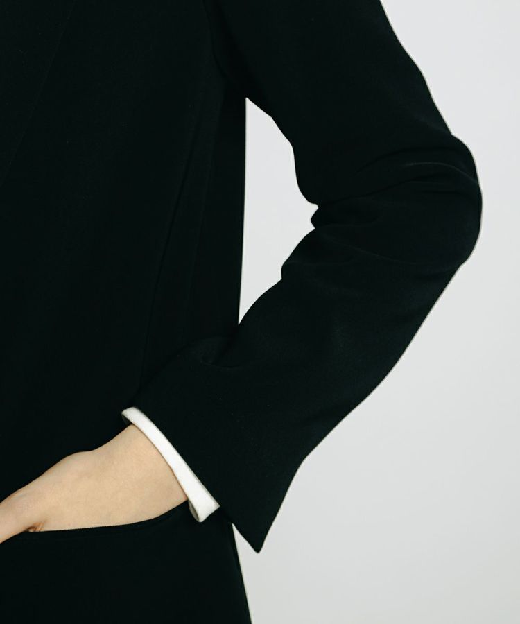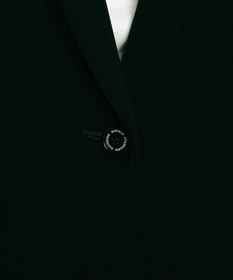 きちんと感のあるダブルクロス生地を用いたテーラードジャケット。ストンと落ちるなめらかな質感が上品で、上半身の華奢見え効果も抜群です。また、ダブルクロスながらも重くならずさらりとした印象でスタイリッシュに着られるのが魅力的。ラフなTシャツに合わせるだけで、こなれ感のあるきれいめカジュアルスタイルが叶います。