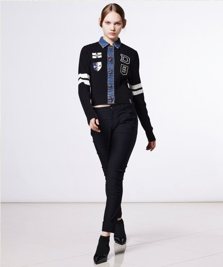 名作の初期モデル、メリルハイテンションパンツの前ボタンジップバージョンが待望の再復活!美麗な細身シルエットながら高いストレッチ性により、ノーストレスで快適に履くことができる優秀なアイテムです。ポケット口のフリル風ディテールや、体型カバーもできる切り替えラインもポイント。どんなトップスとも相性が良く、足元はパンプスでもスニーカーでもスタイル良く決まります。