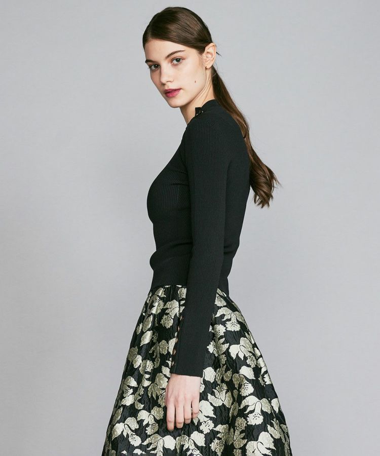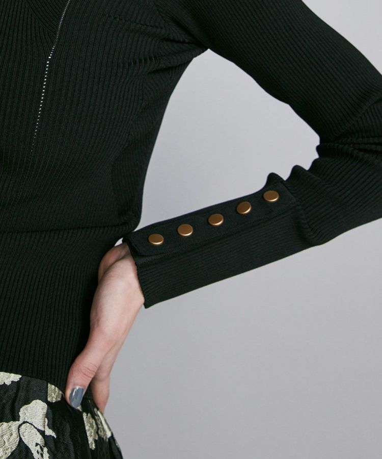 着回し力が高い万能なプルオーバーニット。定番のダル糸を使用して編み立て、程よくフィットするシルエットが女性らしいラインを引き立てます。ショルダーや袖には、艶を抑えたシャンパンゴールドのドットボタンをあしらい、クラシカルで上品なアクセントをプラス。ボリュームのあるスカートと合わせることで、メリハリのあるバランスが生まれ、全体をすっきりとスタイル良く見せてくれる一着です。