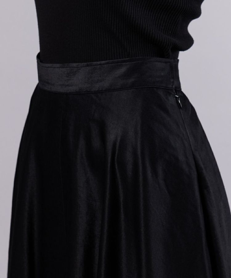 麻のナチュラルな表情とレーヨン特有の美しい落ち感が魅力のオリジナル生地を採用したロングスカート。ふんわりと広がるシルエットが、大人のかわいらしさを引き立てます。フロントにセンターラインを施すことで、脚長効果をアップ。カラーは着回しやすいブラックで、シックなムードを添える一着です。