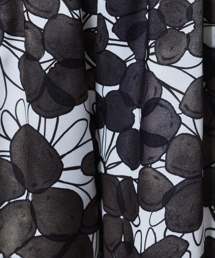 クラシカルな花柄が目を惹く、華やかなパンツ。ゆったりとしたシルエットがウエストやヒップラインを自然にカバーしながら、上品で抜け感のあるスタイルを演出してくれます。ウエストはゴム仕様で、穿き心地も快適。同素材のボウタイブラウス(型番:0304090253)と合わせれば、エレガントな雰囲気のセットアップコーデが完成します。