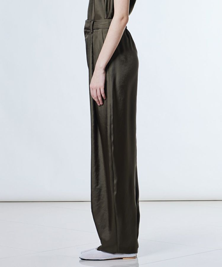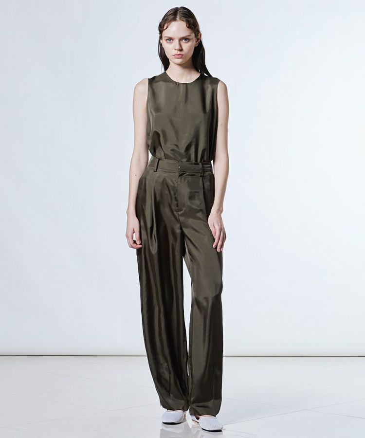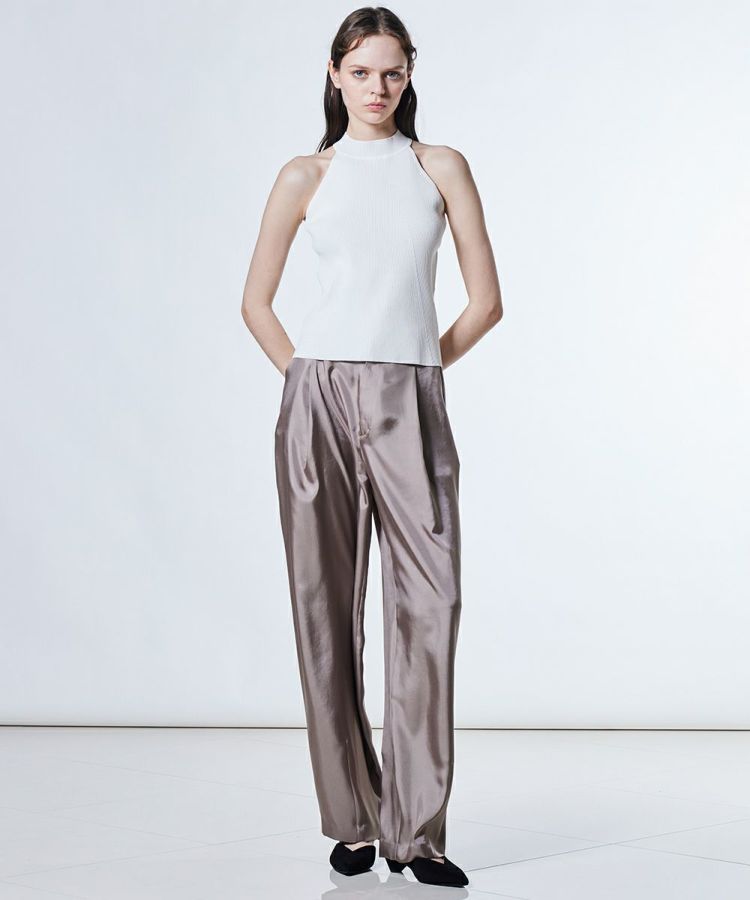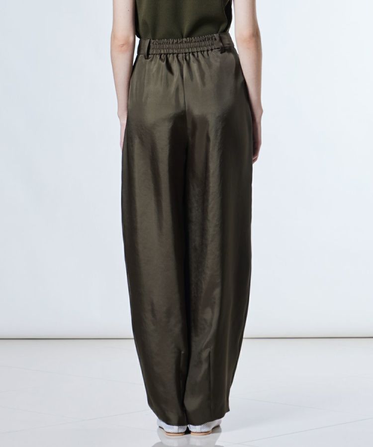 シルクのような肌ざわりが魅力的なナチュラルシルキー素材を使用したパンツ。歩く姿がとてもエレガントで美しく、佇まいをワンランクアップしてくれるアイテムです。接触冷感、吸水速乾といったうれしい機能性も備え、暑い季節でも快適な着心地をキープ。イージーケアで扱いやすく、デイリー使いにぴったりなアイテムです。