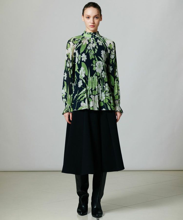 なめらかな表面感と優れたストレッチ性が特徴の、ダンボールニット生地を使用したスカート。程よいフレアシルエットと上品なドレープが、歩くたびに優雅なシルエットを描きます。立体的なプリーツで、ウエストやヒップラインが強調されないのもうれしい。また、足元がすっきりきれいに見える絶妙な丈感も密かなポイントです。トップスを選ばずコーディネートできるうえ、オンオフ、シーンを問わないので、ひとつ持っておくと重宝するアイテム。