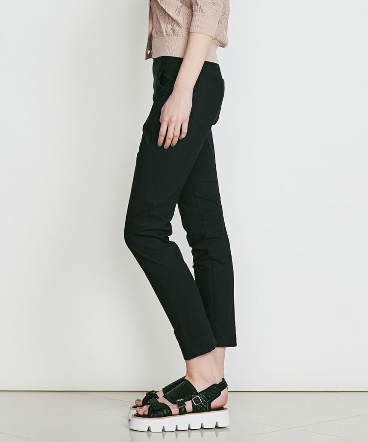 Sov.のロングセラー、メリルハイテンションパンツが再登場!ウエストのゴム仕様に加えて、ストレッチ性に優れたレギンスライクでノーストレスな履き心地が魅力です。長時間のデスクワークでも形くずれせず、トップスをインしてもきちんと感が出るフラットデザイン。ポケット部分のさりげないフリルや、足元をすっきり見せてくれるアンクル丈など、ディテールも抜かりありません。