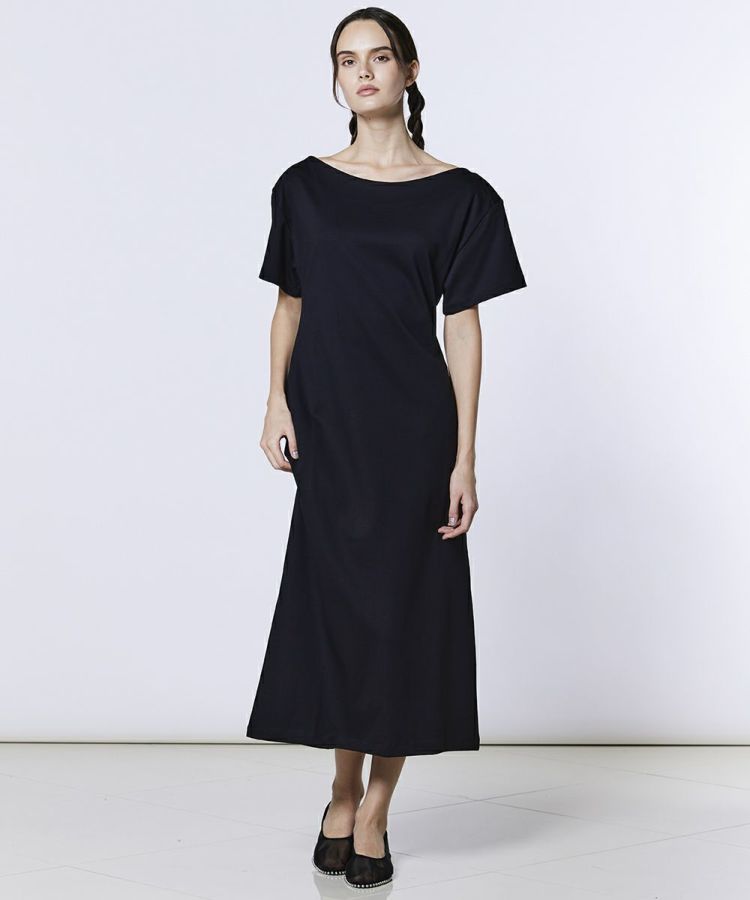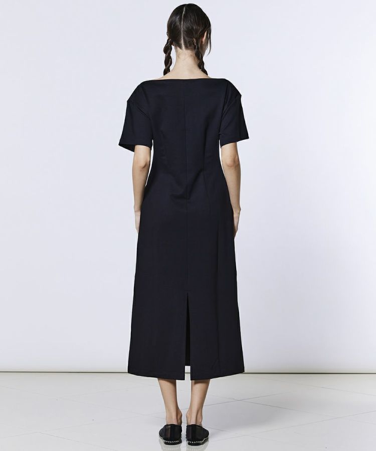 ざっくりと開いたボートネックがデコルテラインを美しく引き立て、センシュアルな大人の雰囲気を漂わせるワンピース。肉厚な素材ながらもシルエットはすっきりと美しく、カジュアルになりすぎず上品に着こなせます。ウエストには程よいくびれを持たせ、女性らしいラインを演出。背面にはスリットを施し、動きやすさと抜け感をプラスしました。