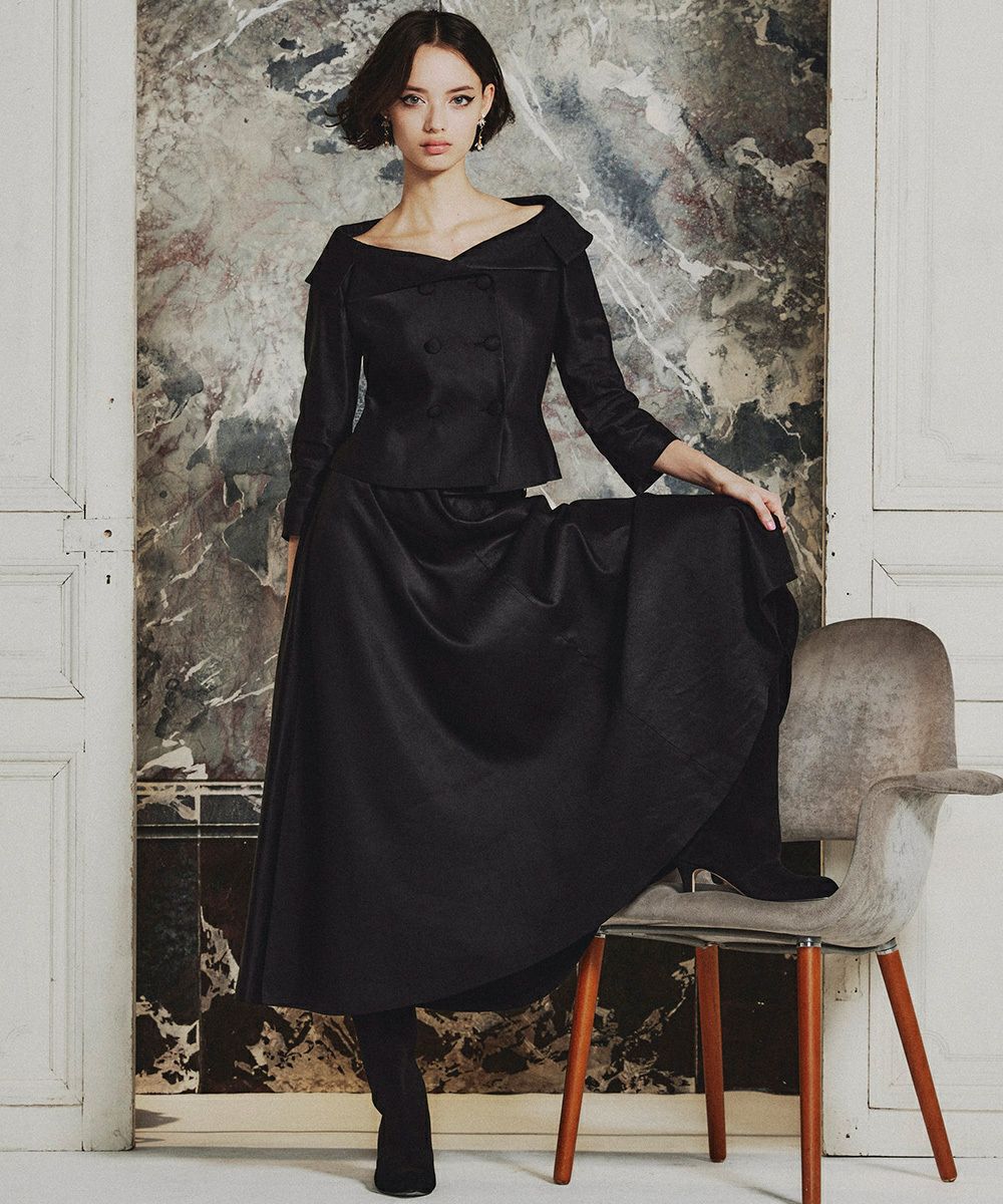 デコルテを美しく引き立てる、オフショルデザインのダブルボタンジャケット。イタリアメーカーと共同開発したオリジナル素材を使用し、麻のナチュラルな表情とレーヨン特有の美しい落ち感が魅力です。タイトなシルエットが女性らしさを引き立て、洗練された印象に。同素材のスカート(型番:0302231253)と合わせれば、ジャケットワンピースのような着こなしも楽しめます。