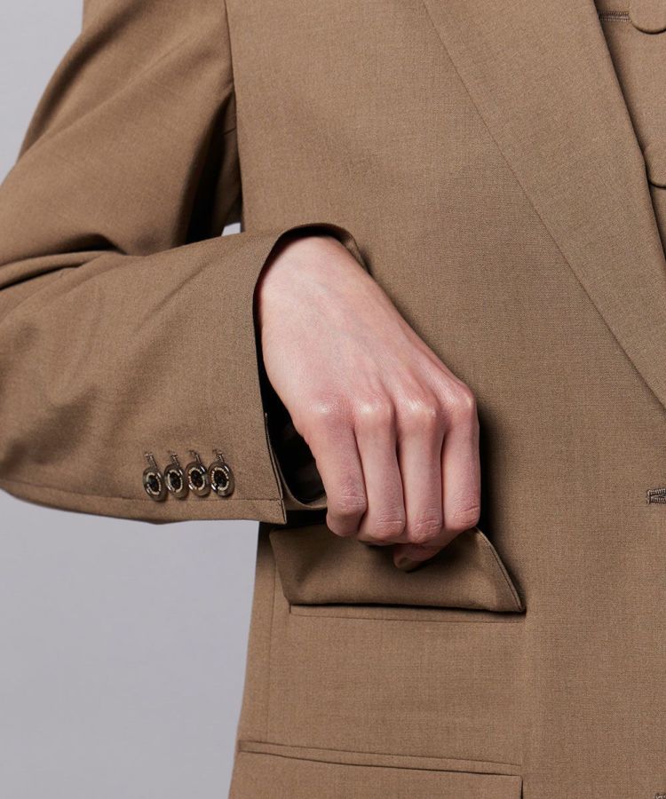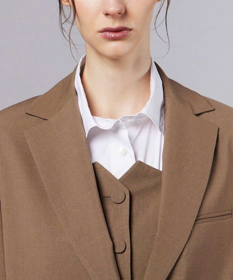 トルコの老舗ファブリックメーカーが手掛ける、ストレッチ性に優れたサスティナブル素材を使用したジャケット。オーバーサイズに仕上げることで、程よく抜け感のある雰囲気を演出しました。背面にはたっぷりとシャーリングを施し動きやすさときちんと感をプラス。左右非対称に配置されたポケットが遊び心を添え、一味違うデザインに仕上がっています。