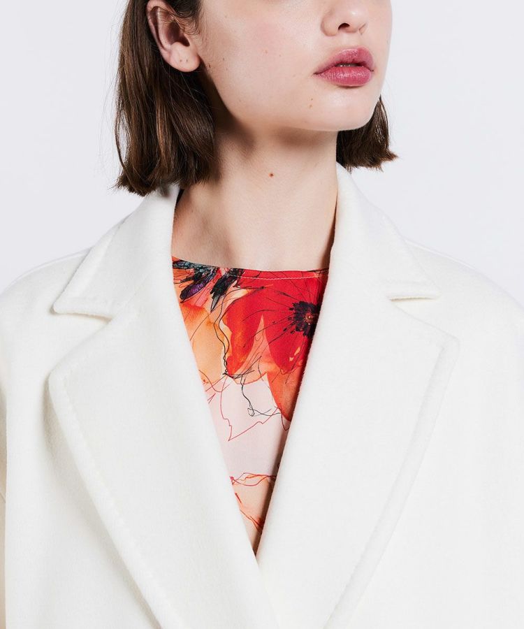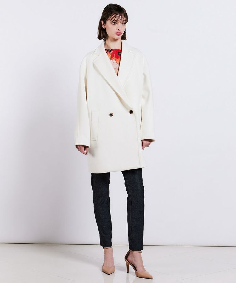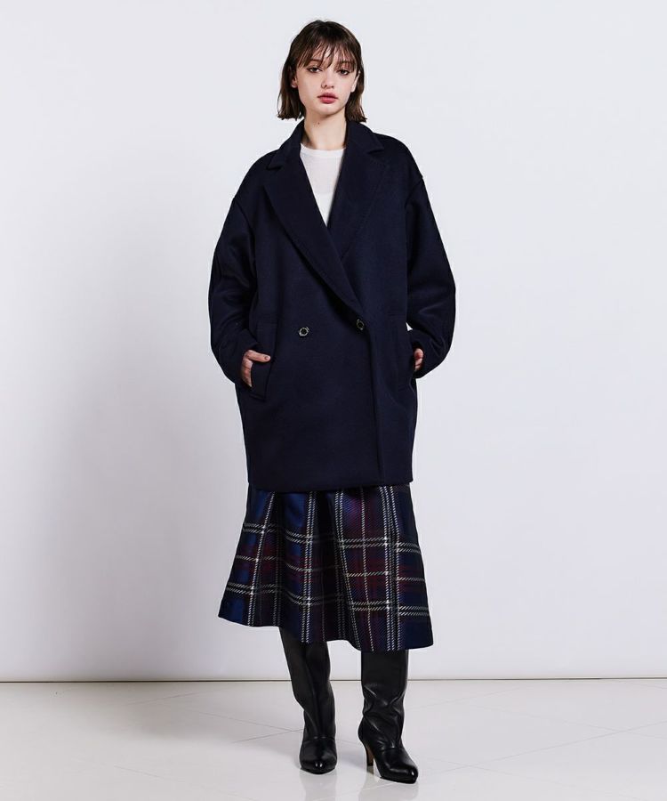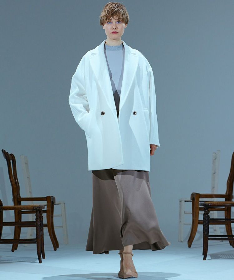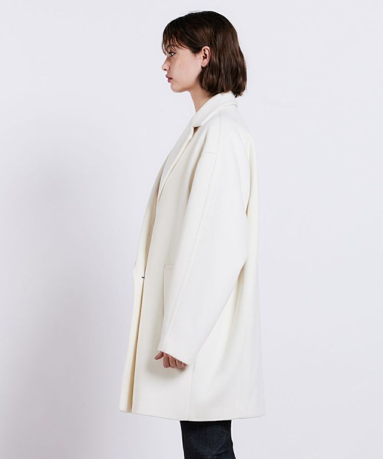 クラシカルなムードたっぷりな、ダブルボタンのジャケット。細番手のウール原料を使用した二重織素材のを高密度に打ち込むことで、反発感がありながらもしなやかな風合いを出しました。コーディネートしやすいミドル丈で、暖かいのが特長。AMFステッチがさりげないアクセントになっています。