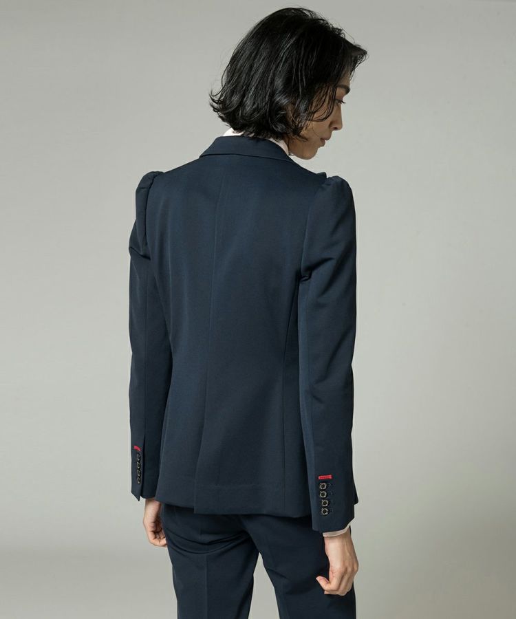 シルエットの美しさが引き立つ、Sov.自慢のDIVAジャケット。肩部分にギャザーを入れ、丸みのあるフェミニンなラインを演出。ウエスト周りもシェイプさせているため、スマートで女性らしいシルエットをつくります。やや幅広で丸みを帯びた襟デザインも魅力。袖口の赤ステッチがデザインのアクセントです。同素材のパンツ(商品番号 0506071201)とセットアップで着こなせます。