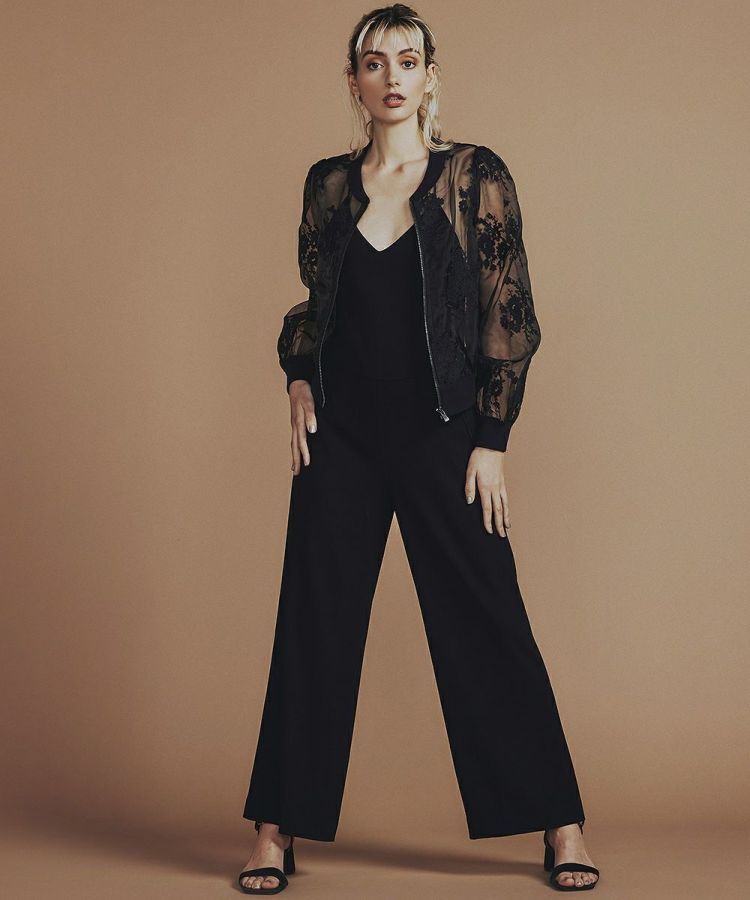 透け感が魅力のブルゾン。全体に施した花柄の刺繍も、フェミニンな印象を高めてくれます。インナー次第で肌見せを調整できるので、夏でもレイヤードコーデが楽しめる優れもの。袖をふわっと大きめに作っているのもポイント。腕まわりがすっきり華奢見えします。メンズライクなブルゾンデザインをエレガントに転換してくれるおしゃれなアイテムです。