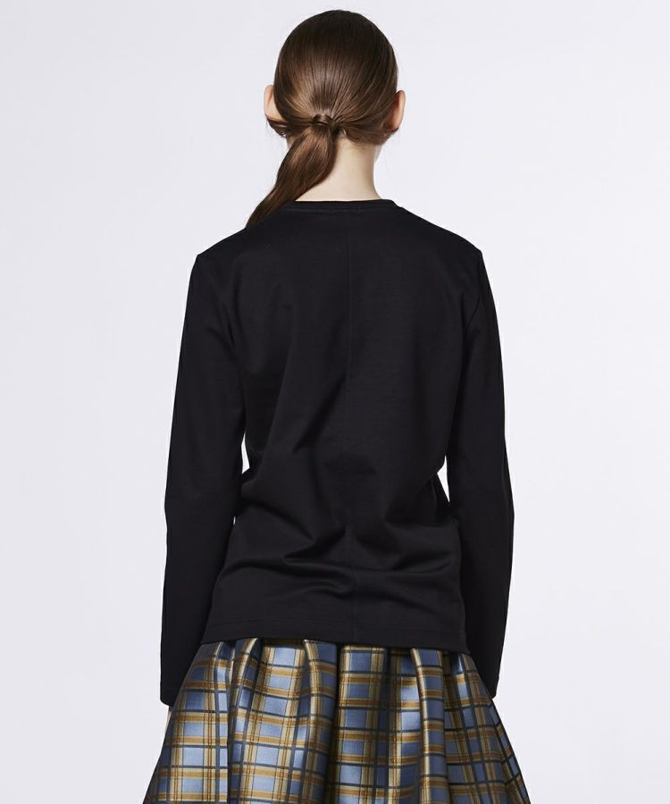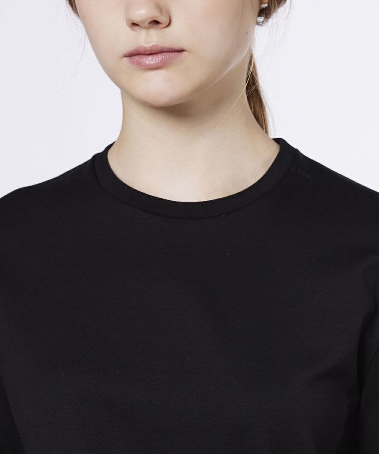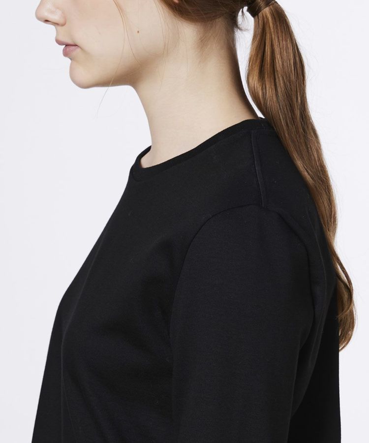 肉厚ながらも美しいシルエットを演出するシンプルなカットソー。脇ハギをなくしたストレスフリーな設計で、長時間の着用も快適です。カラーは万能なブラックとオフホワイトの2色展開。着回し力が高く、1枚着はもちろんレイヤードスタイルのインナーとしても活躍する万能アイテムです。