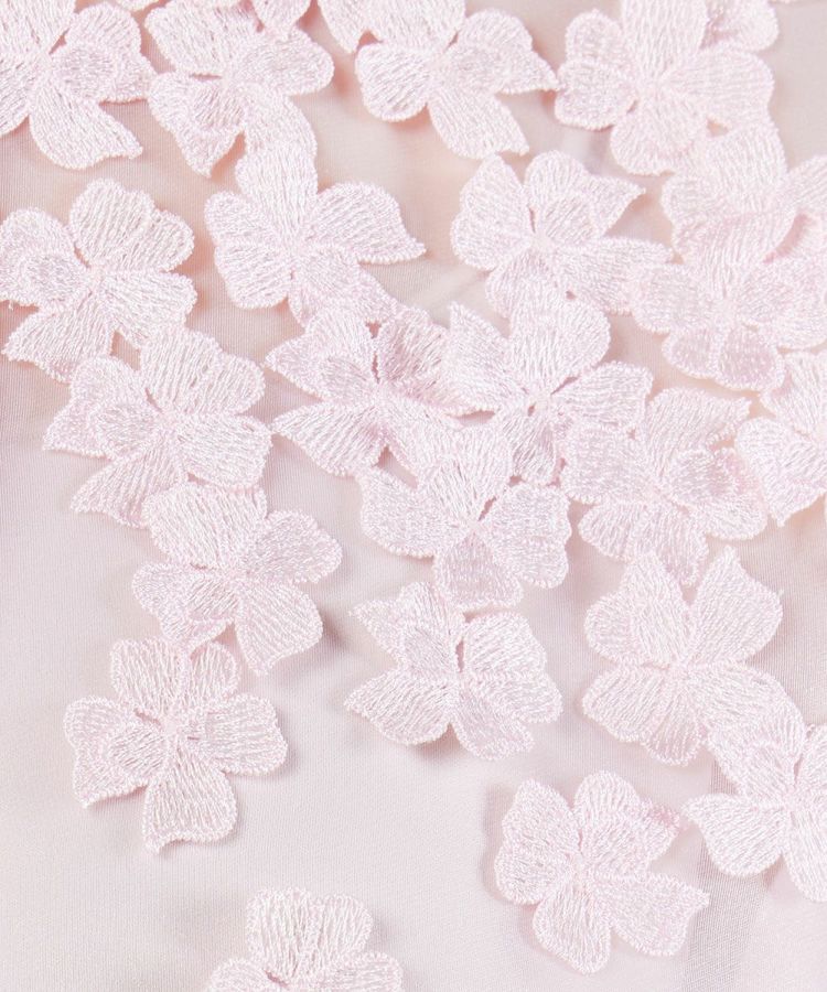 上品な透け感がフェミニンな印象を与えるオーガンジーのブラウス。立体的なフラワーモチーフを全面に散りばめ、華やかさプラスしました。胸元にあしらった大ぶりのボウタイリボンがデザインのアクセントに。カラーは使い勝手の良いオフと女性らしいピンク、WEB限定カラーのサックスの3色展開でご用意しました。
