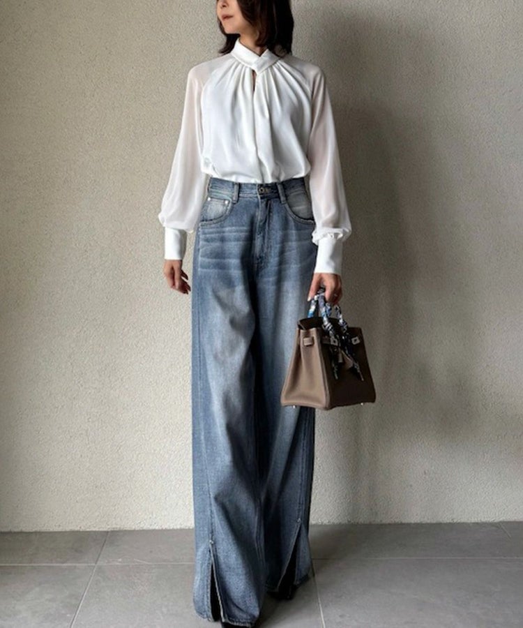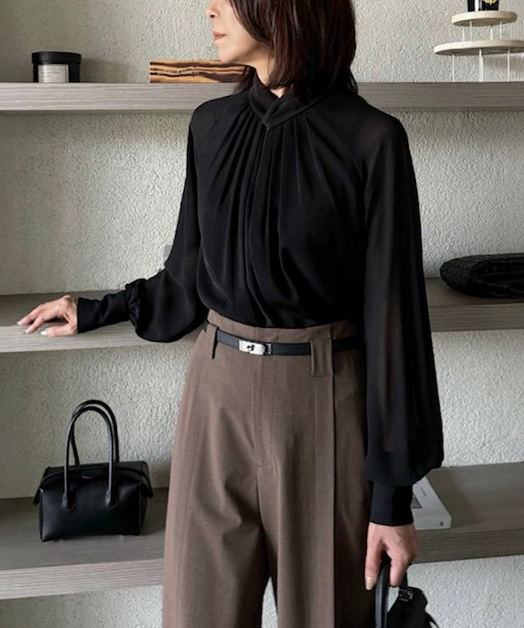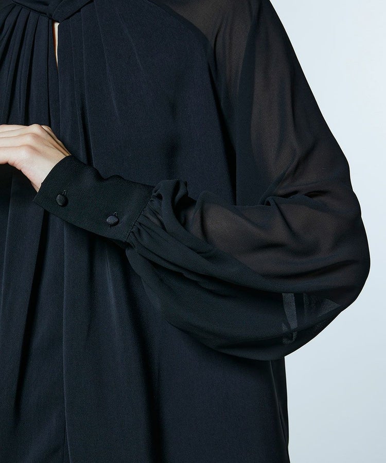 AKKO×Sov./ クロスネックマットサテン シフォンブラウス(WEB限定)