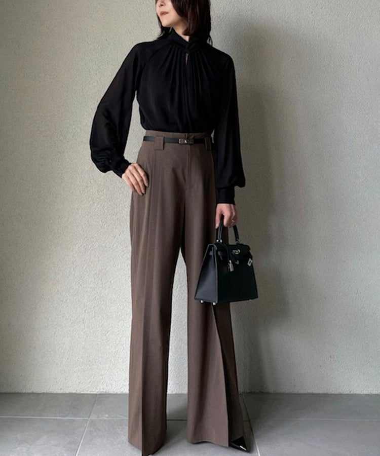 フェミニンな印象を引き立てるシフォンブラウス。光沢を抑えたマットサテン生地を使用し、シックな印象に仕上げました。女性らしいデザインは、オフィスからデイリー使いまで幅広いシーンに対応。1枚持っておくとさまざまなスタイルに重宝する万能アイテムです。