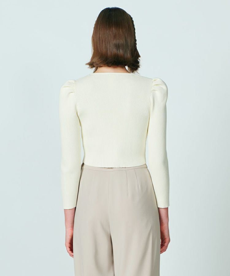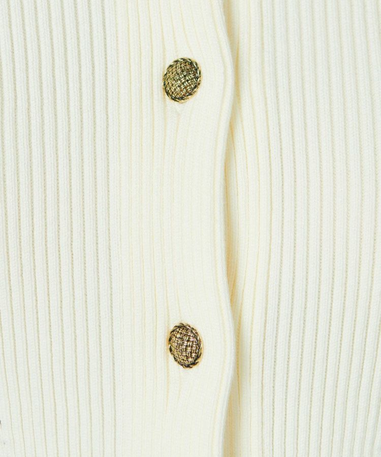 定番のSNOWY糸で編み上げた、リブニットのカーディガン。伸縮性があり、程よくボディラインにフィットするシルエットで、女性らしい印象を与えてくれます。ギャザーを寄せアクセントにしたショルダーは柔らかな中にほんのりとエッジをプラス。ショート丈とも相まって、全身のコーディネートにメリハリを出してくれる一枚です。金のボタンがクラシカルで、ワンピースとの相性は抜群!