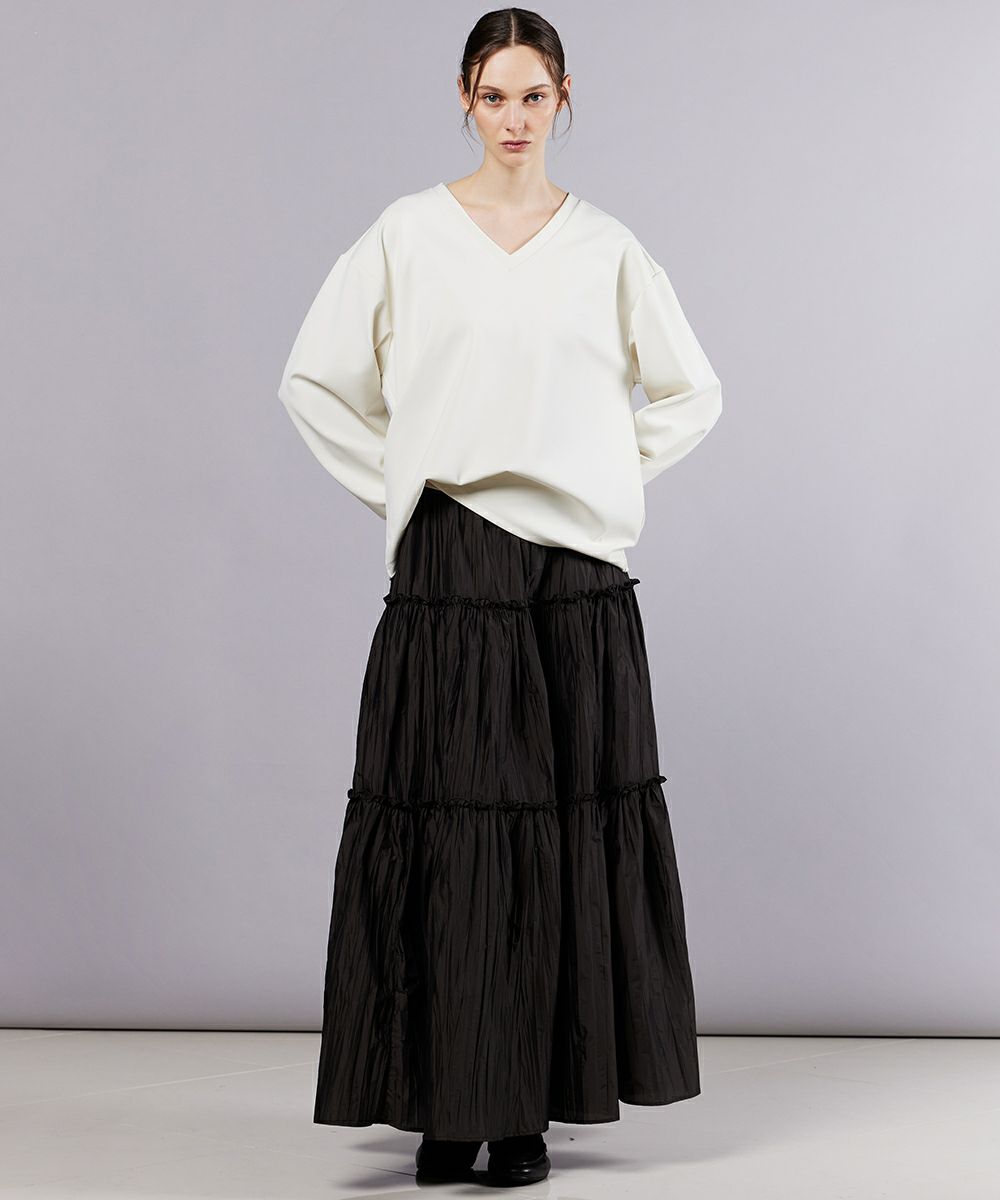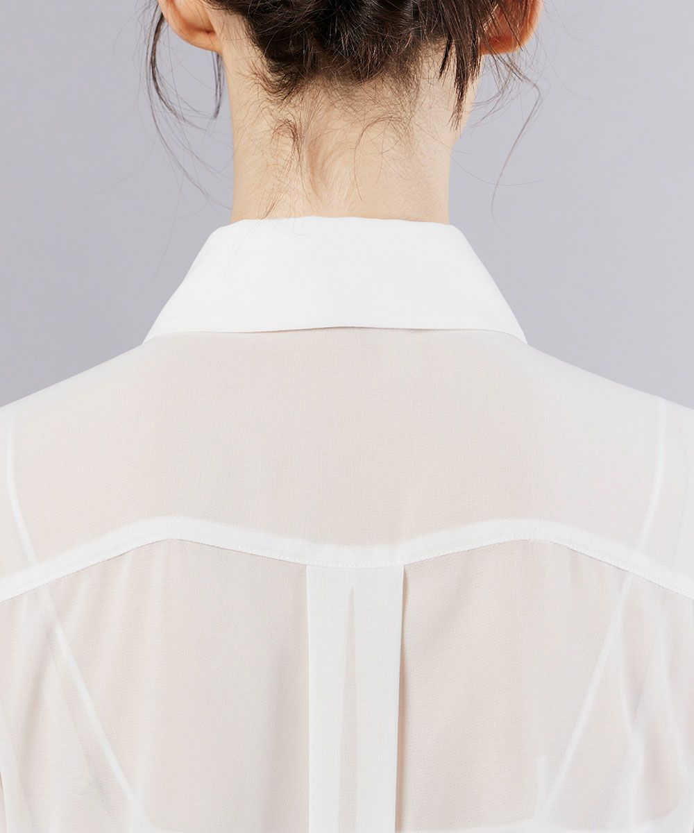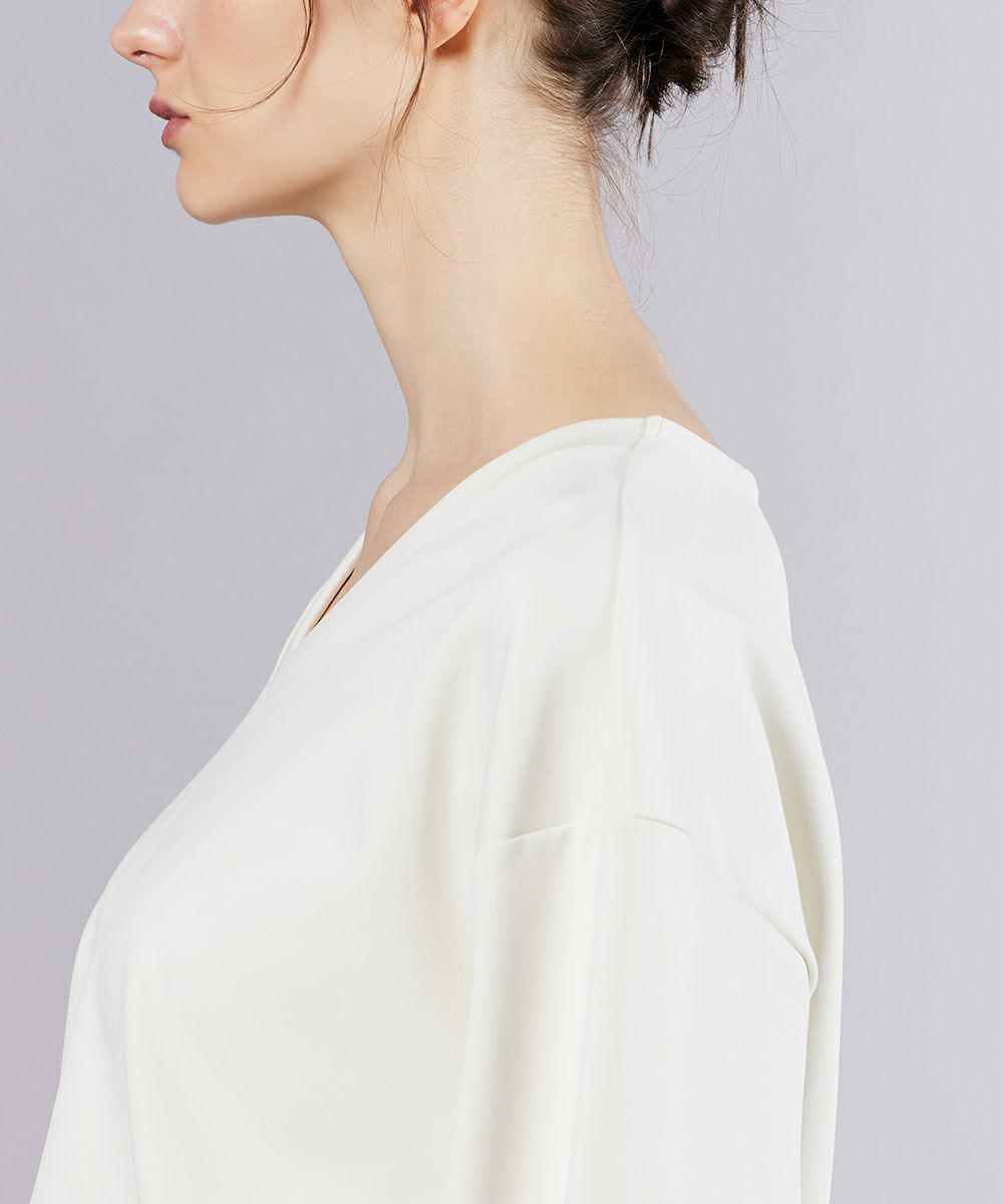 AKKO×Sov./ クロスネックマットサテン シフォンブラウス(WEB限定)