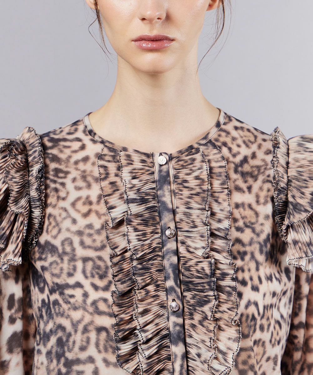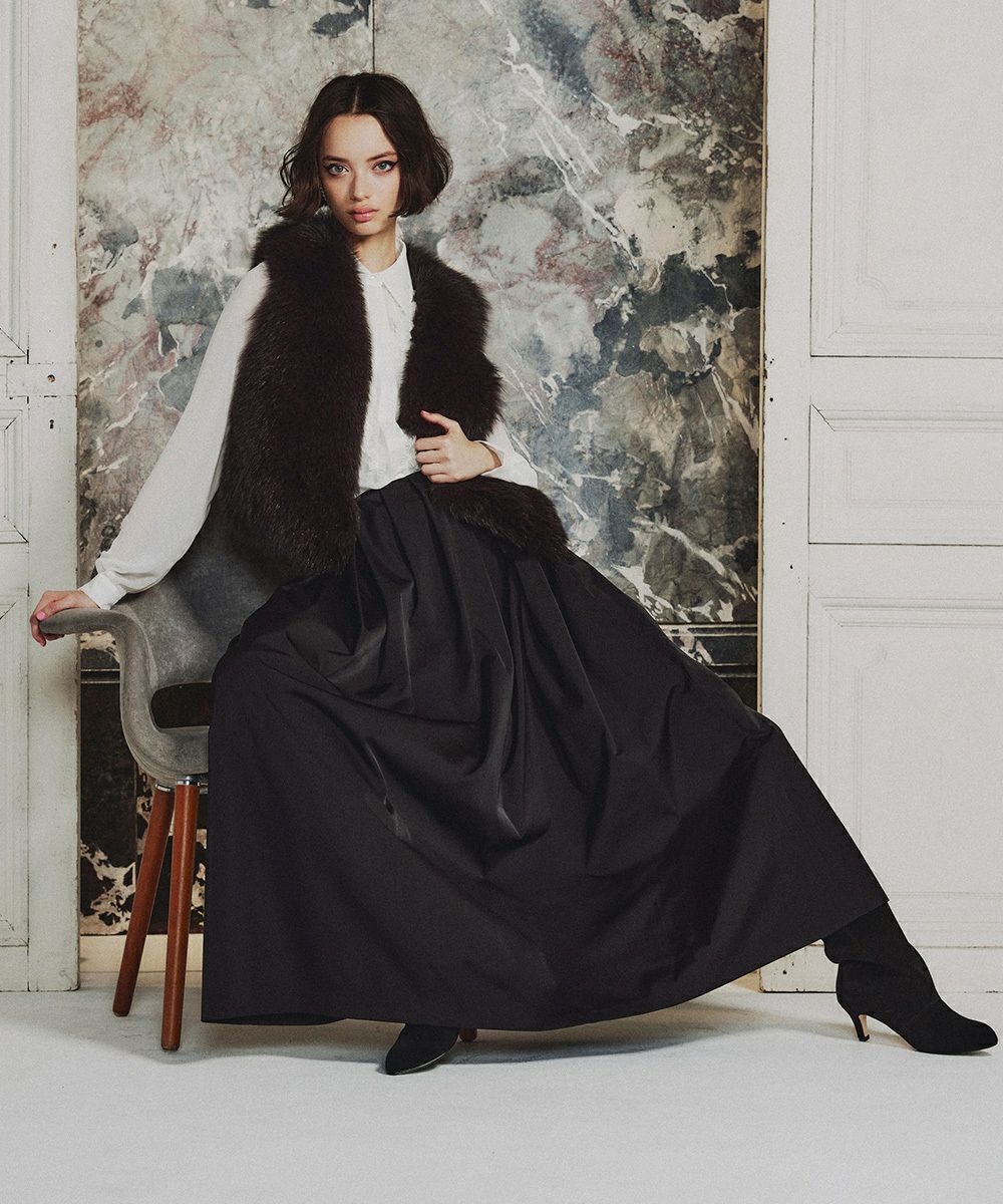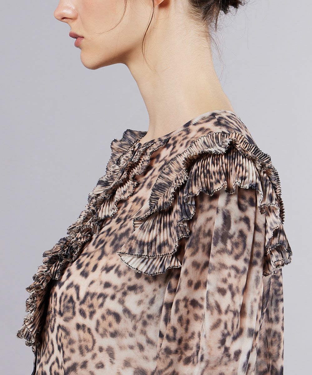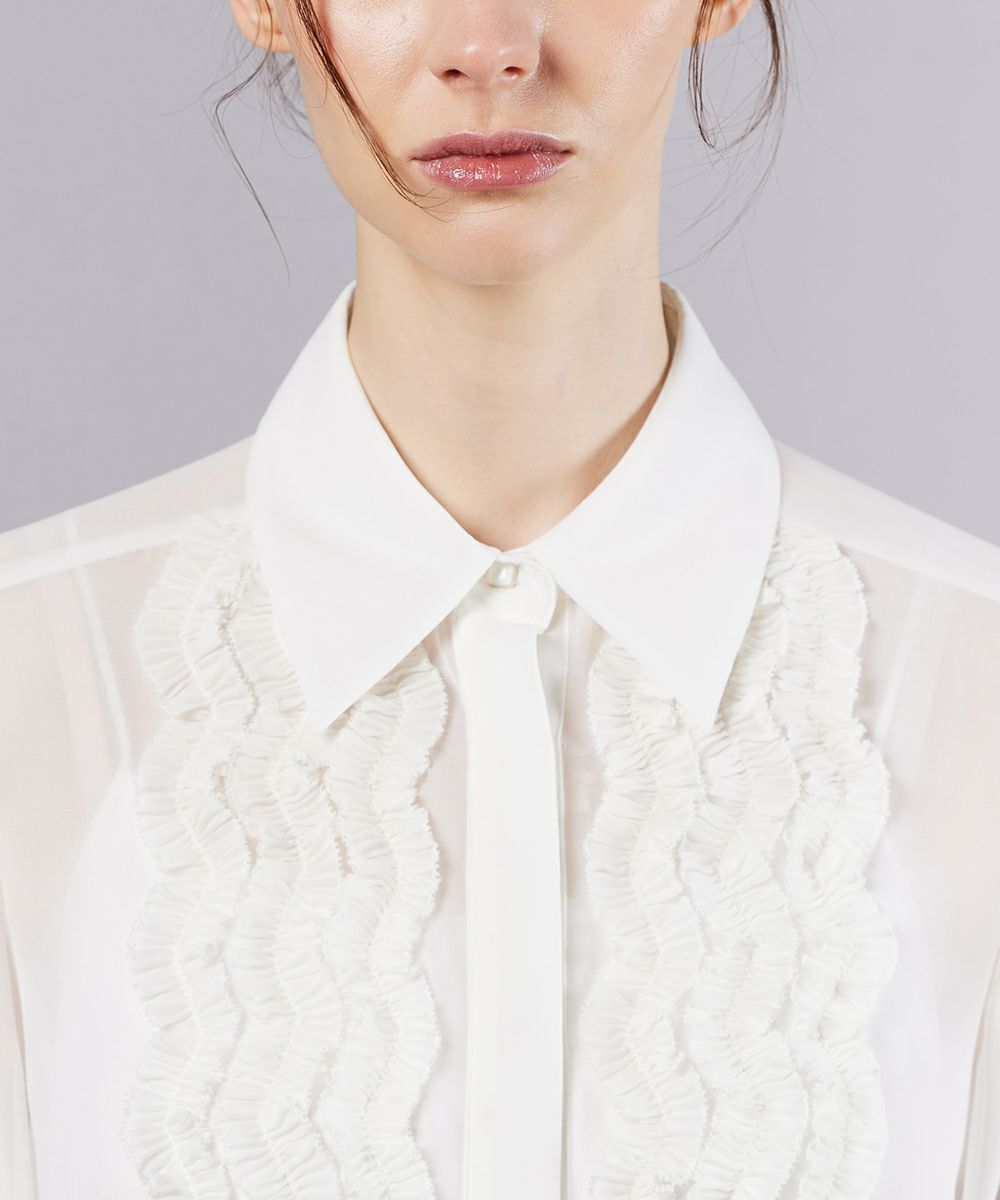 AKKO×Sov./ クロスネックマットサテン シフォンブラウス(WEB限定)