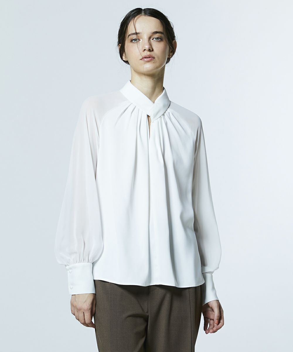 AKKO×Sov./ クロスネックマットサテン シフォンブラウス(WEB限定)