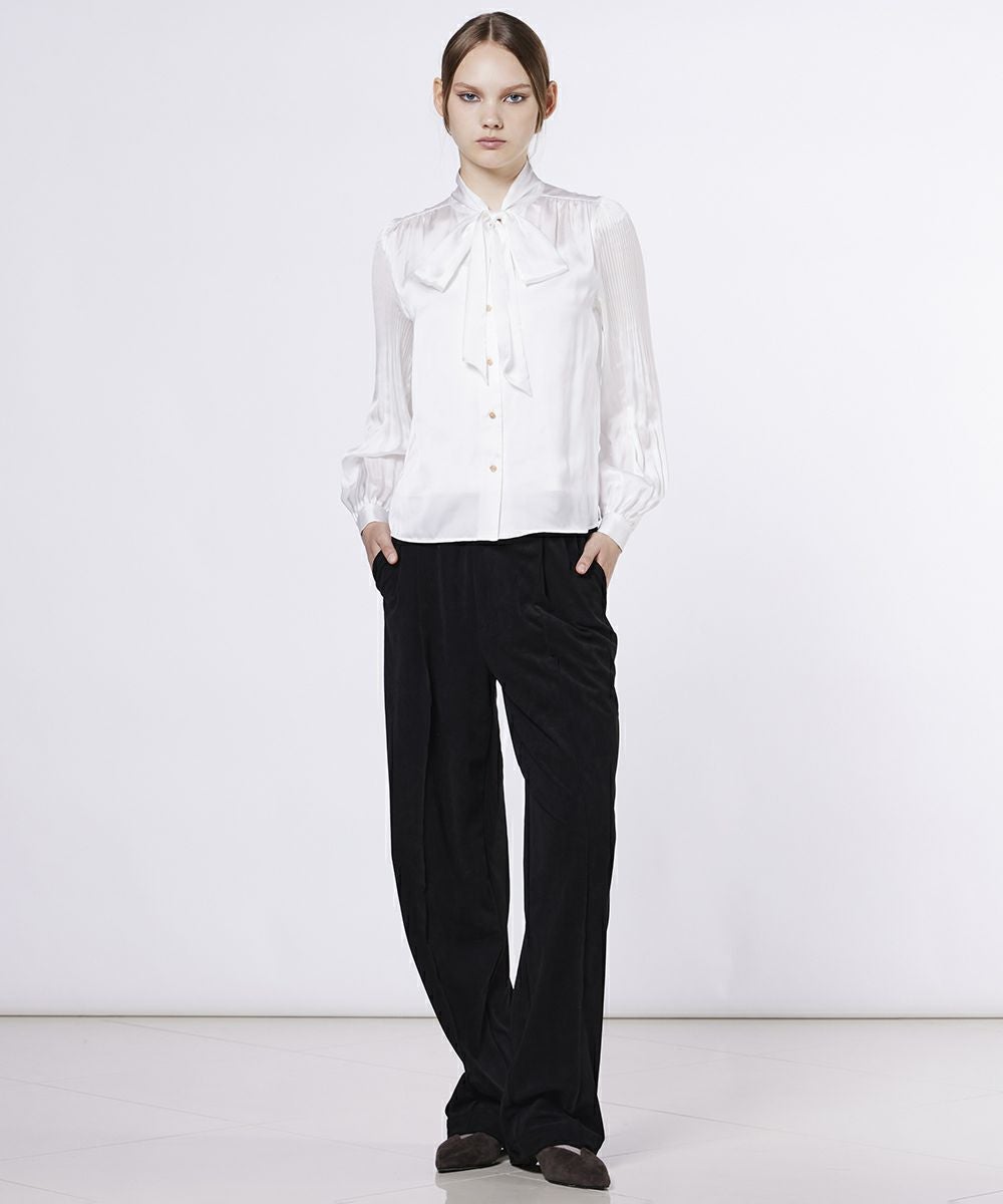 Sov. / サテンギャザーボウタイブラウス