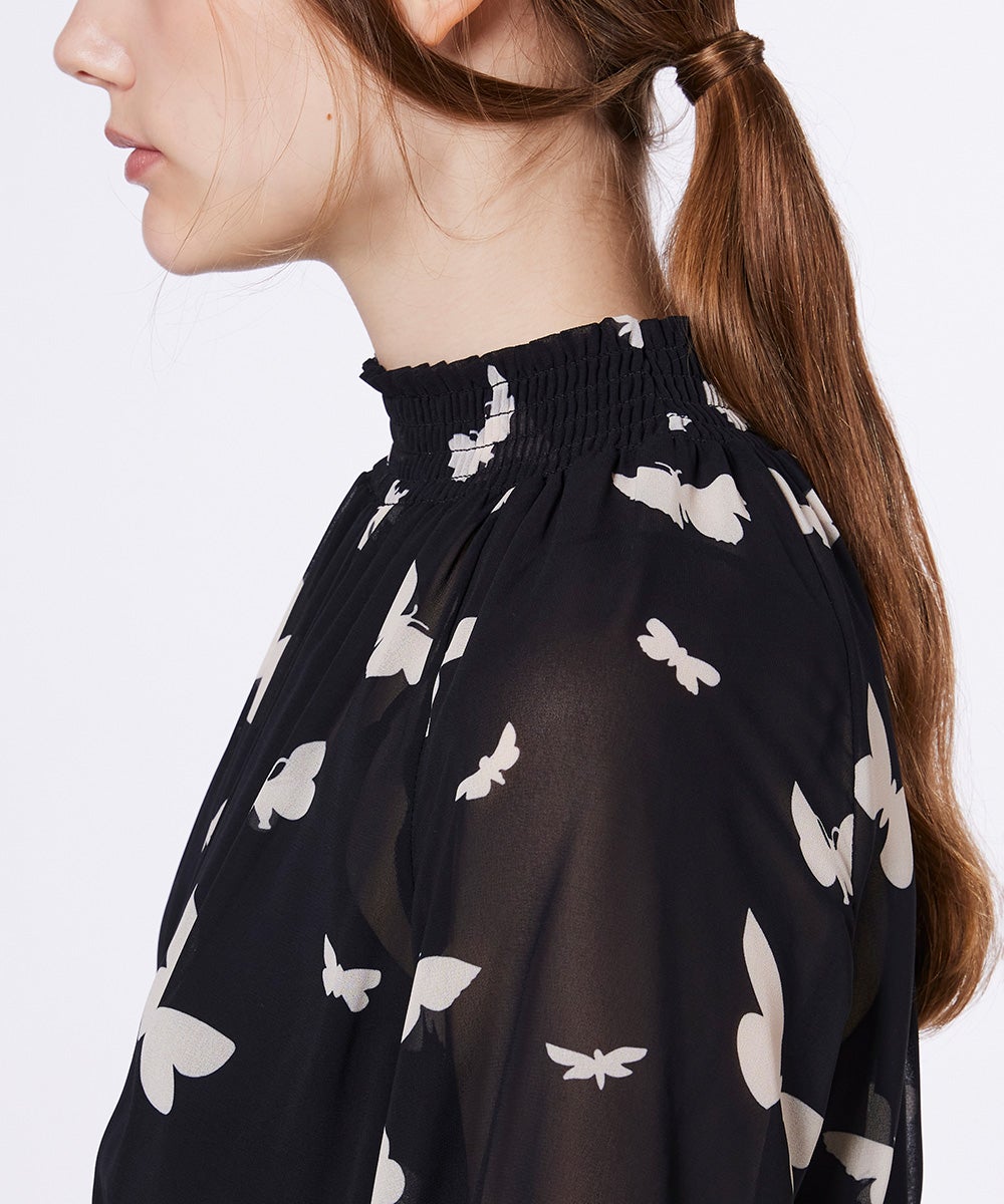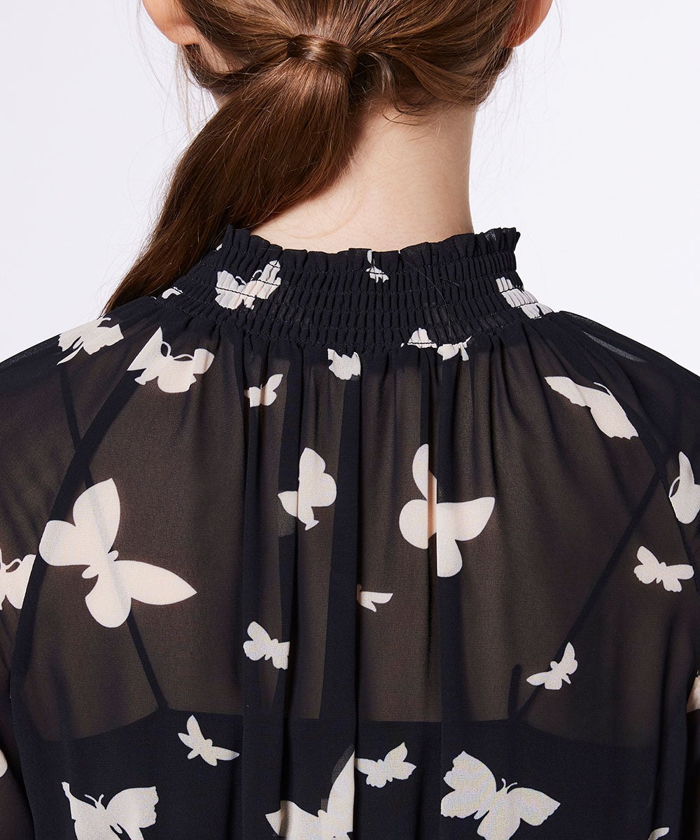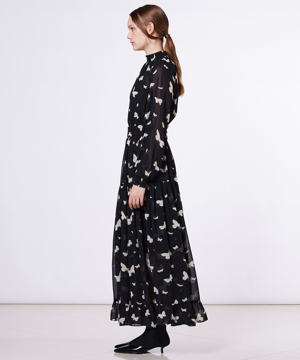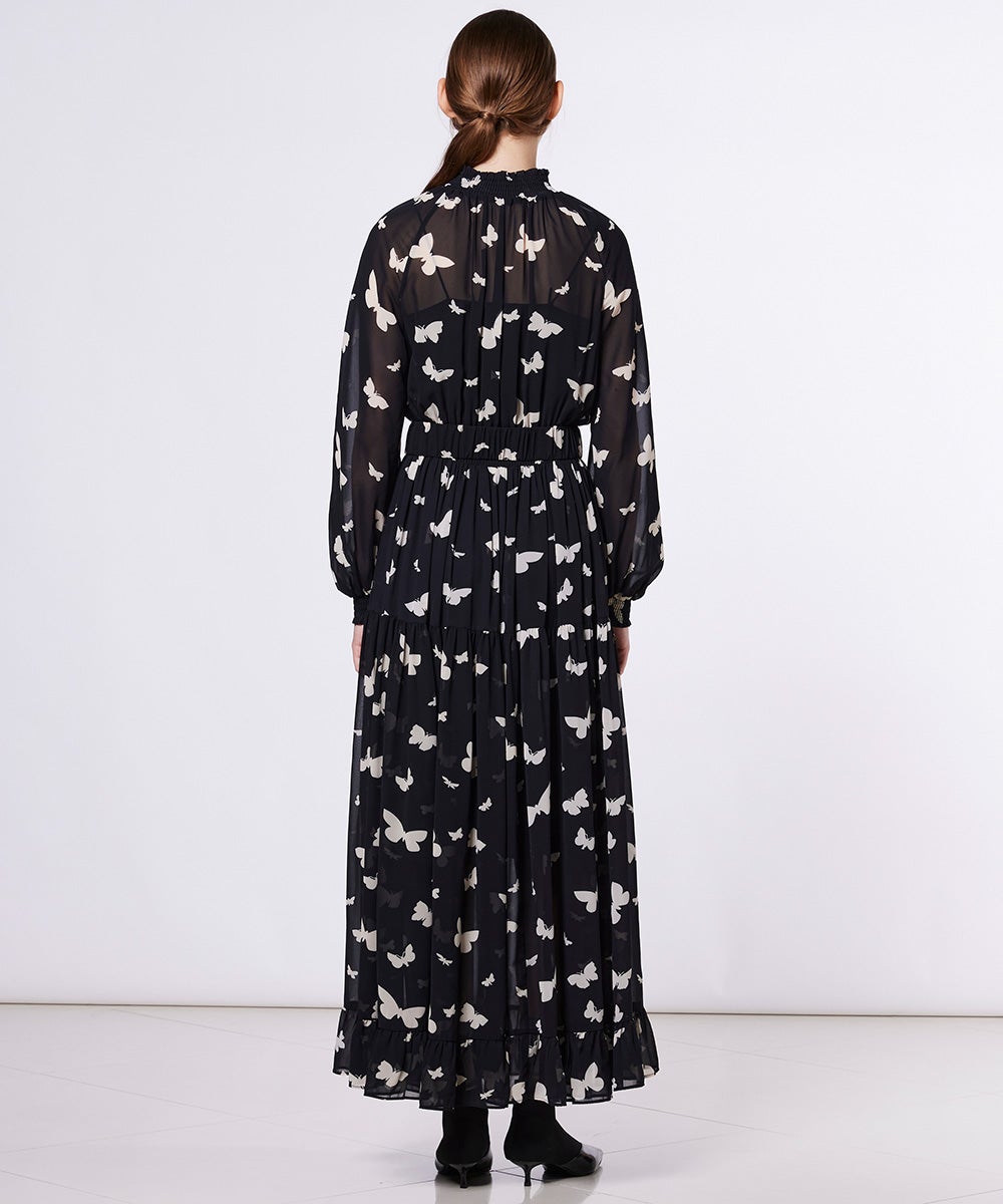 【POINT 10%】Sov. / バタフライプリント シフォンワンピース