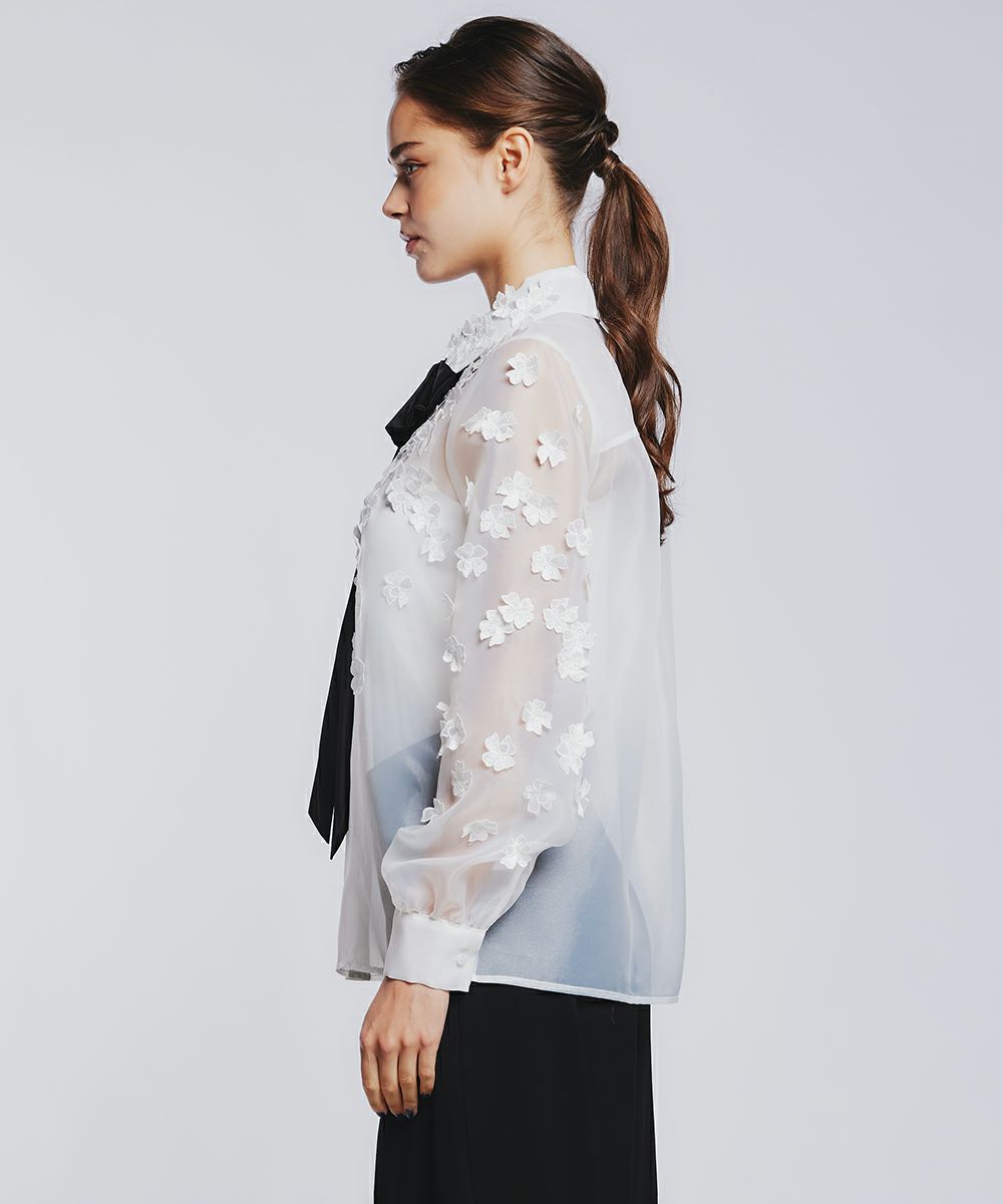 Sov. / オーガンジーフラワーボウタイシャツ