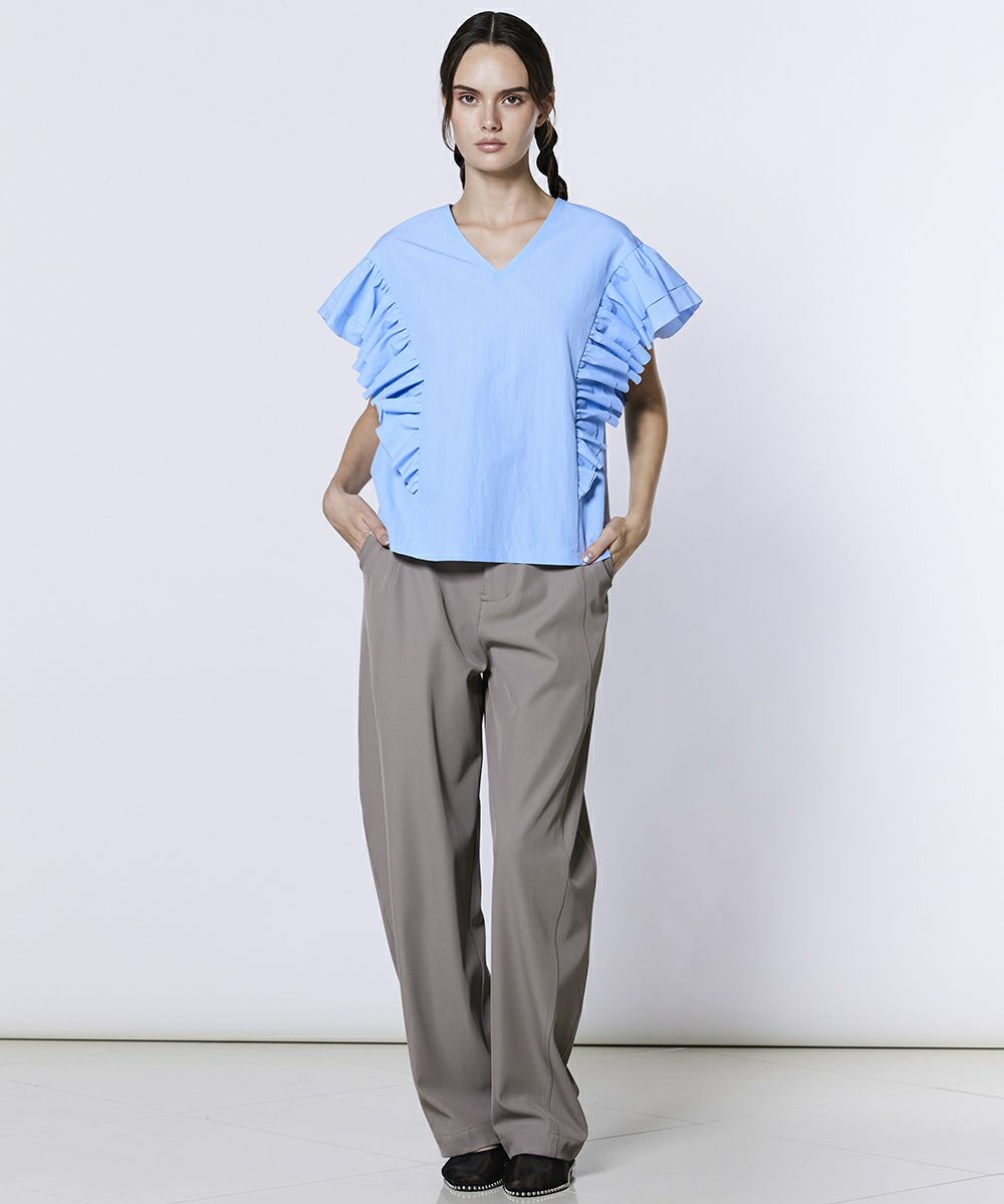 Sov. / スーピマコットン Vネックフリルトップス