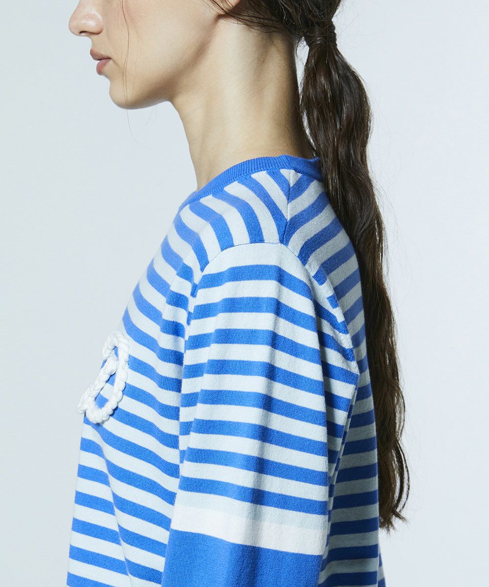 DSC / Dロゴロープ刺繍 ボーダー天竺ニット