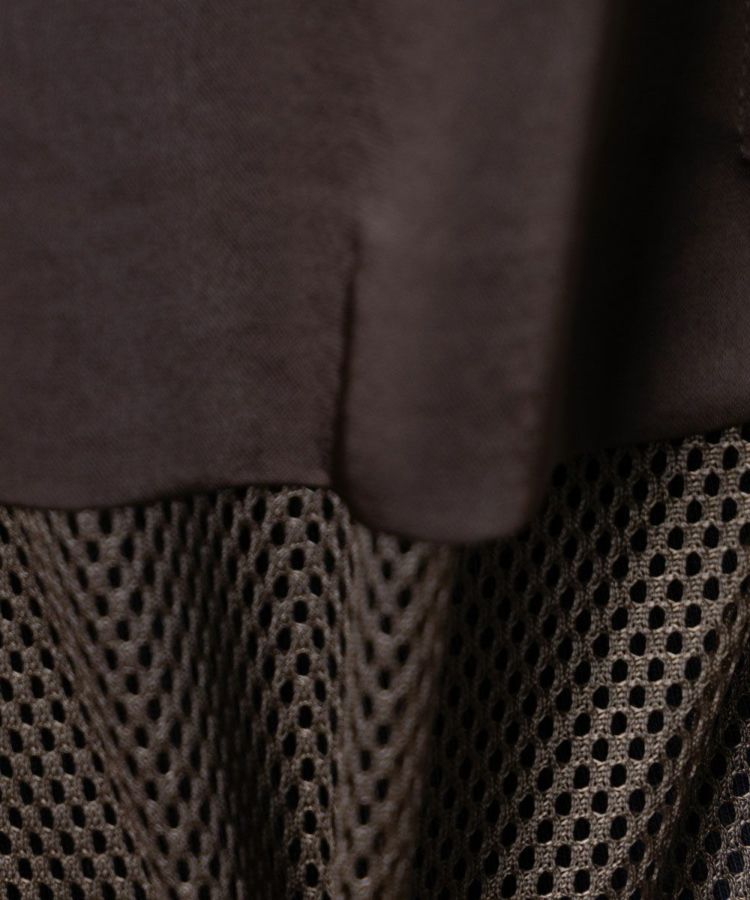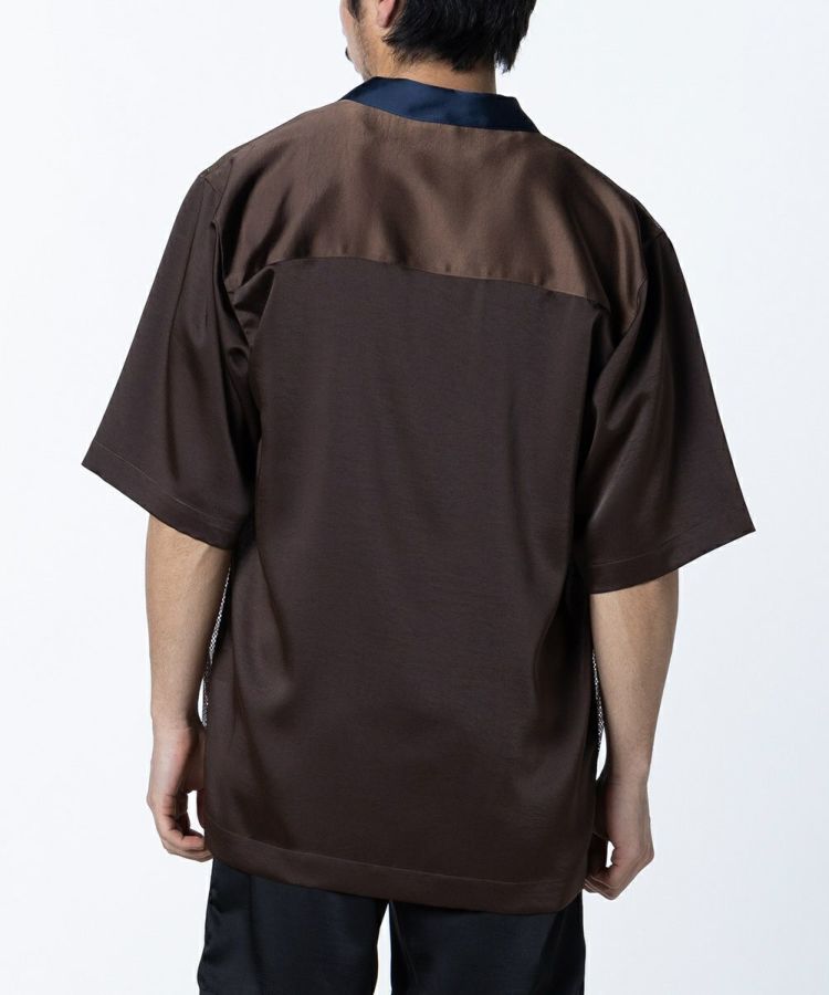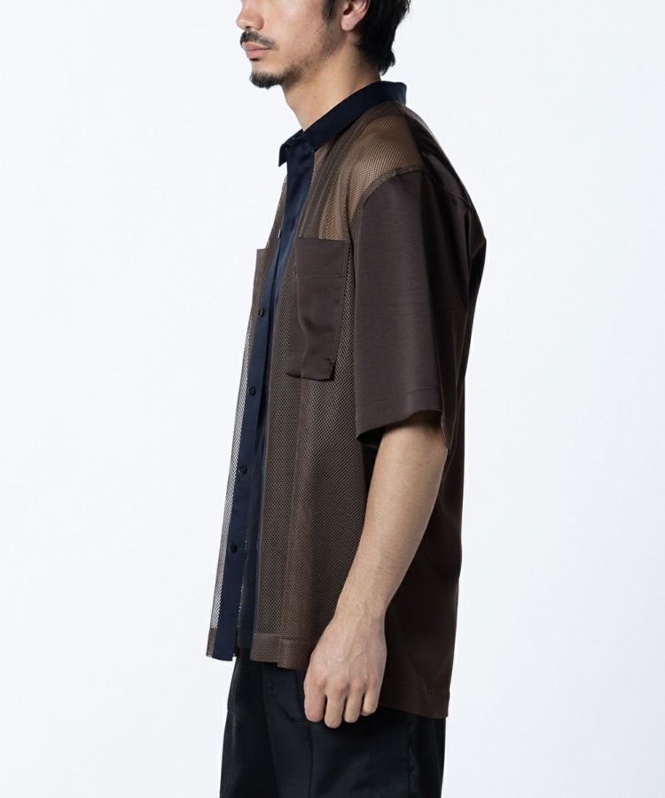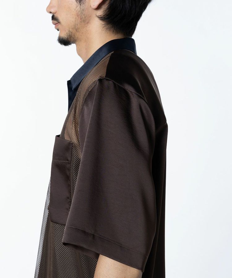 涼しげなメッシュ生地で作った半袖シャツ。ゆったりとしたシルエットで、リラクシンなムードに仕上げました。シックなカラーリングに加え、後ろ身と袖にあしらった上品な質感のポリエステルサテンがポイント。軽やかながらも都会的で、タウンユースに活躍するのが魅力です。イージーケアなのもうれしい。