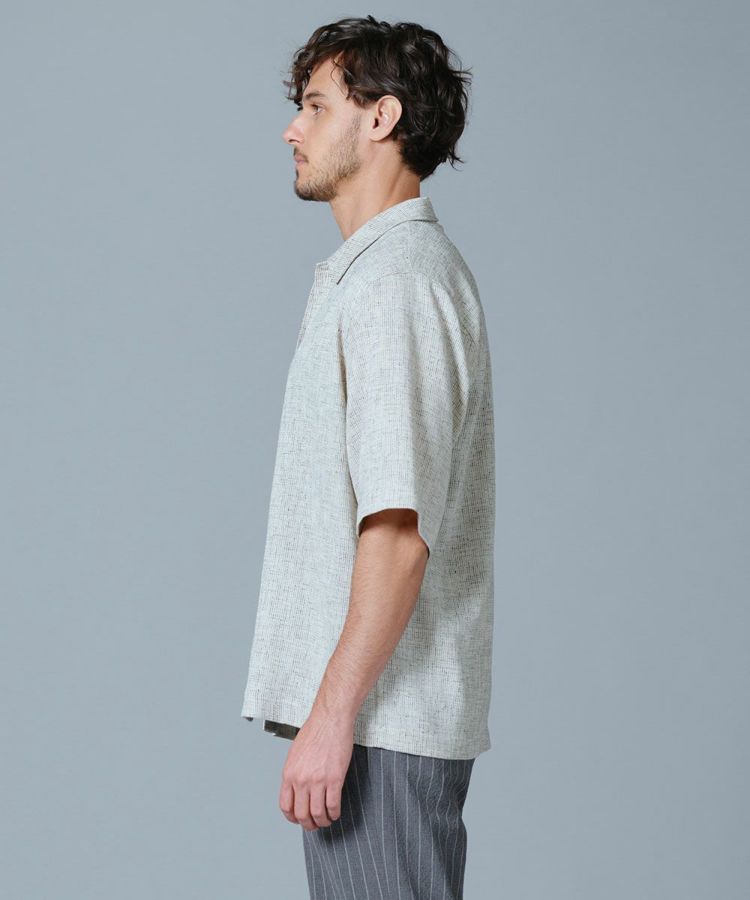 シンプルながらも上品な印象を与える、大人のためのオープンカラーシャツ。通気性に優れたメランジメッシュ素材を使用しており、暑い季節でも涼しく快適な着心地を叶えます。羽織れば抜け感のあるリラクシンな雰囲気に、ボタンを留めればきちんと感のあるスタイリングに。幅広い着回しが楽しめる一枚は、ワードローブに加えておくと重宝すること間違いなしです。
