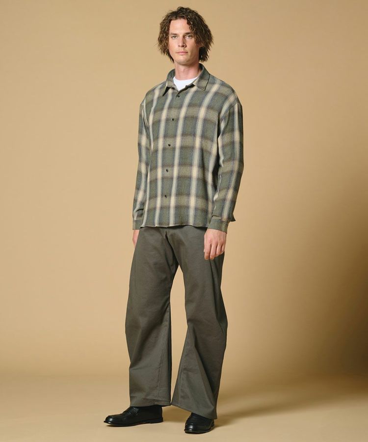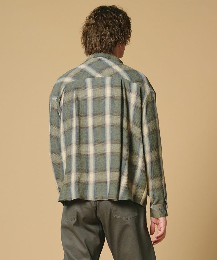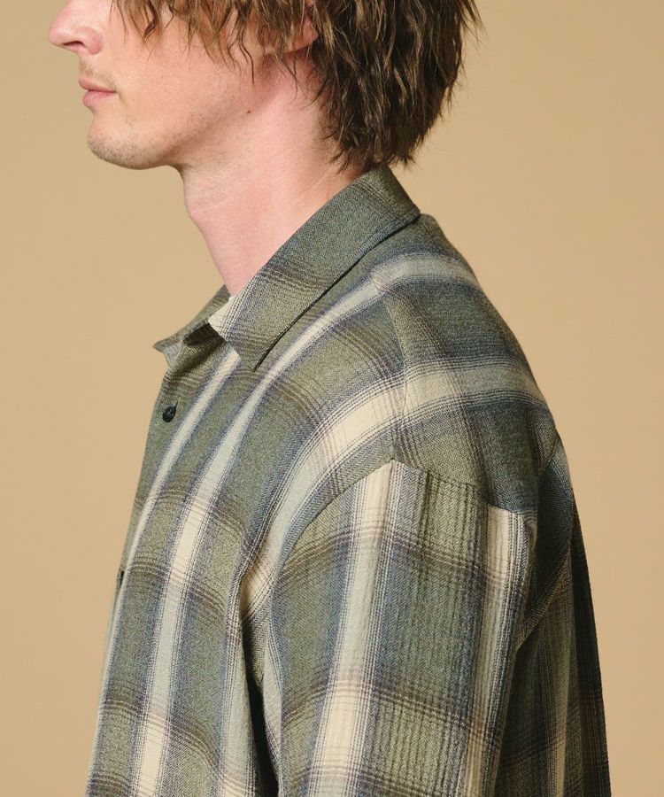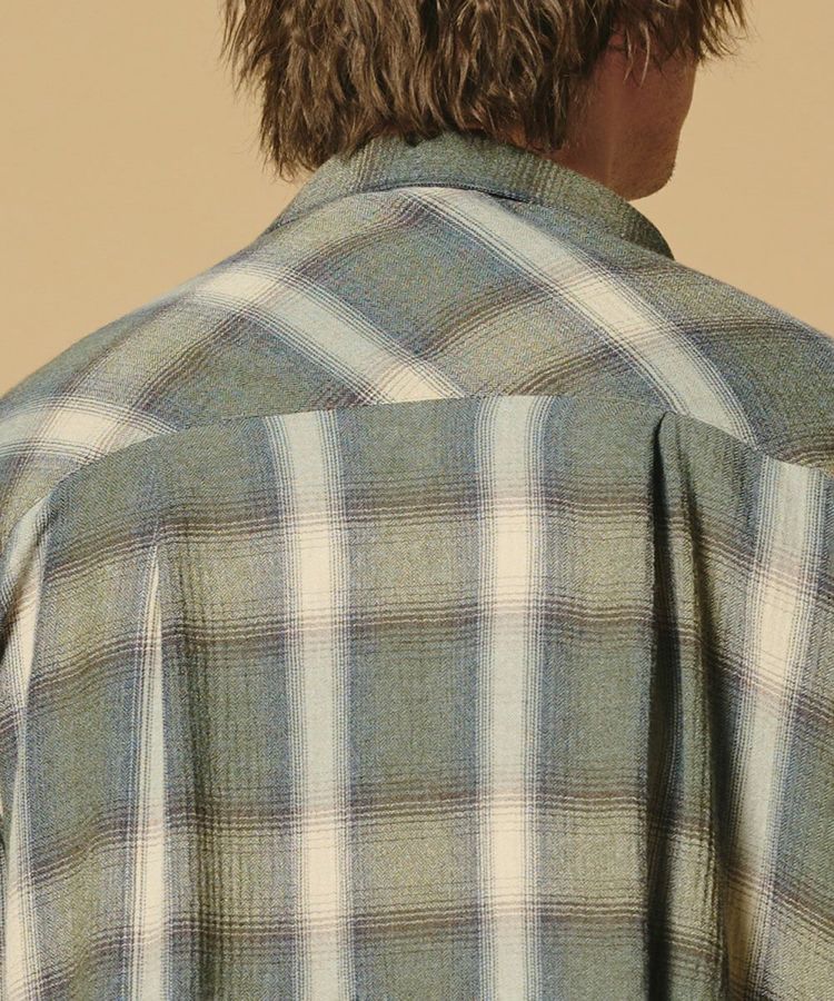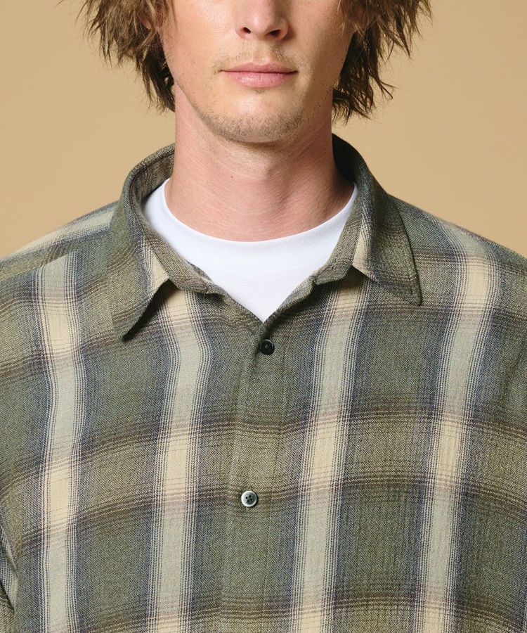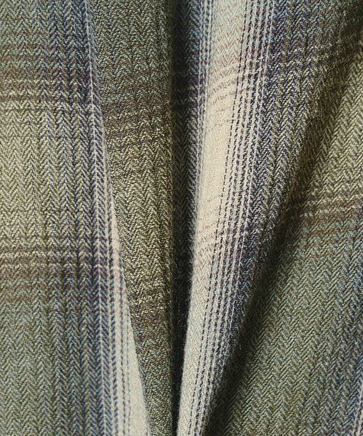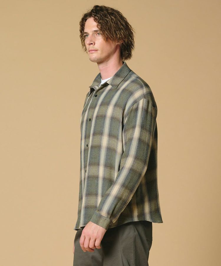 イタリア・GIOLICA社のウールヴィスコース素材を使用したシャツ。ウールとヴィスコースの混紡糸をあえて甘く織ったことで、柔らかな風合いと適度な透け感を実現しました。生地の表面には程よくシボ感を出し、ナチュラルな表情をプラス。落ち着いたトーンのチェック柄は、羽織るだけで上品な大人のカジュアルスタイルが叶います。